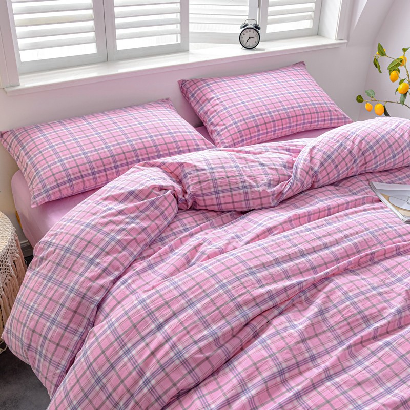(总)雅珺 2021新款色织全棉水洗棉四件套AB版,草莓格,粉柠格,芒果格,青柠格