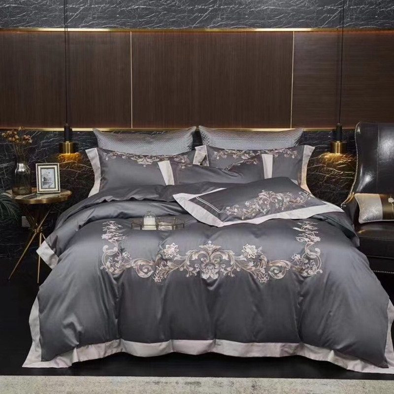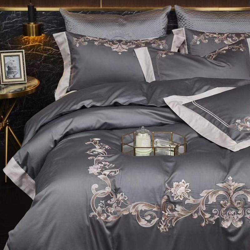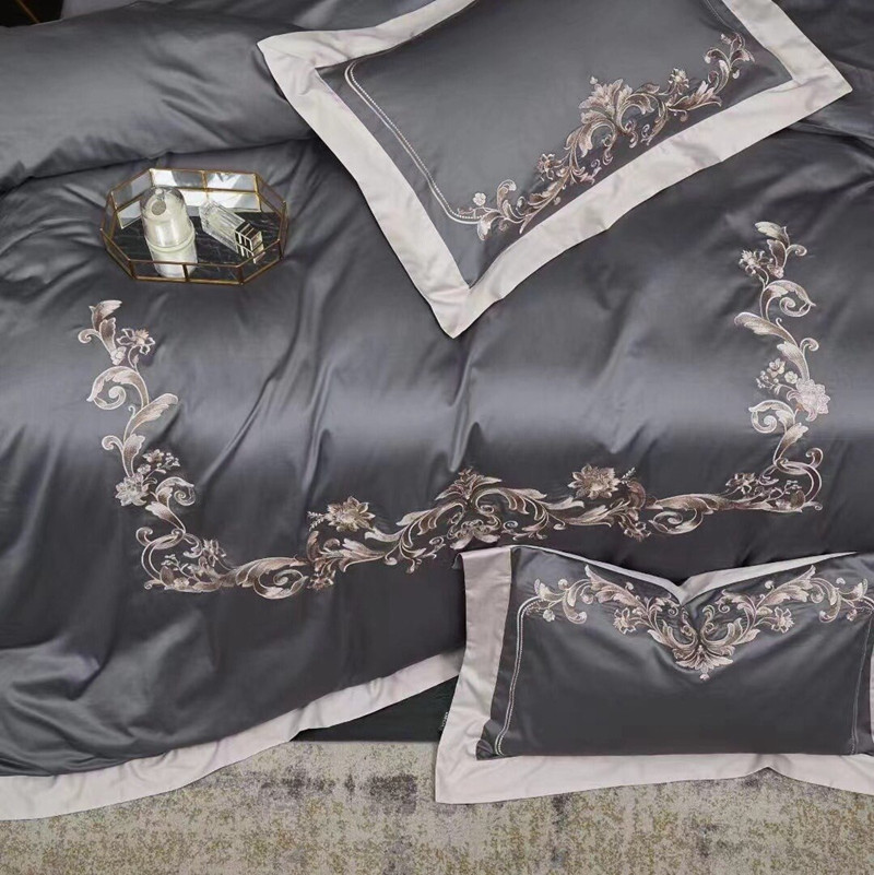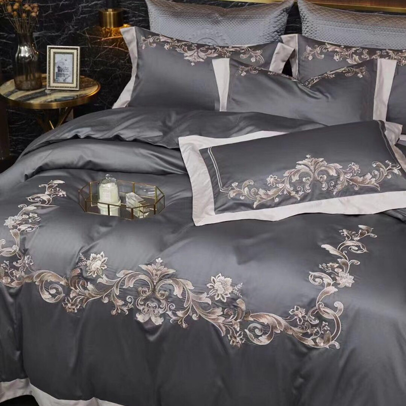 总玖玖爱家纺 纯棉100支贡缎长绒棉刺绣被套三件套四件套加大四件套,白色,高级灰,卡其,蓝灰,绿色,浅桔,深蓝,紫豆沙