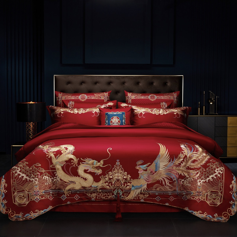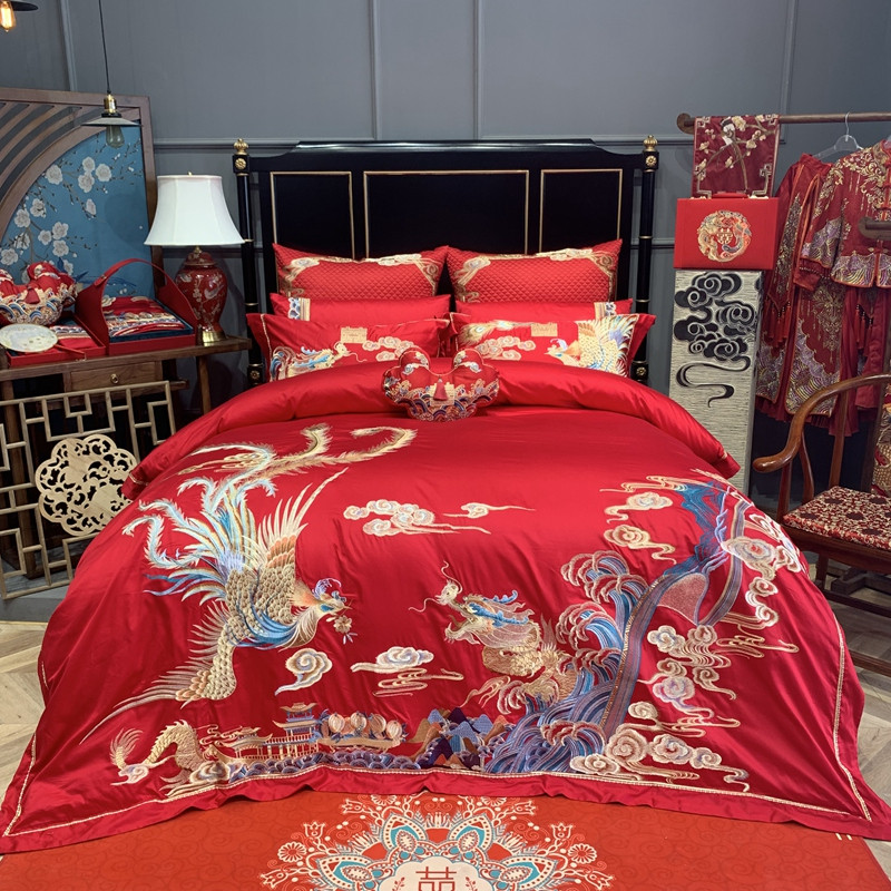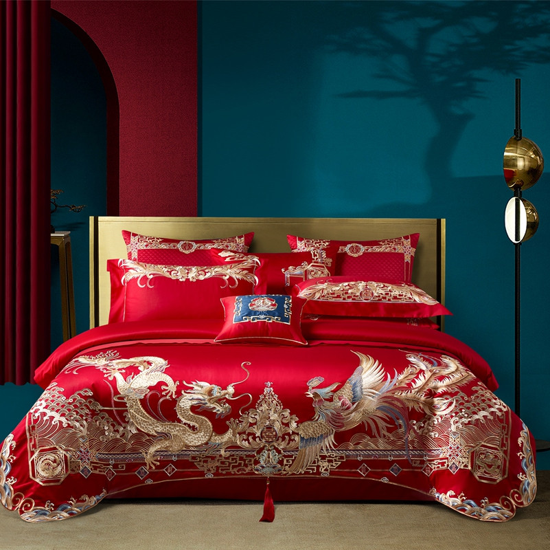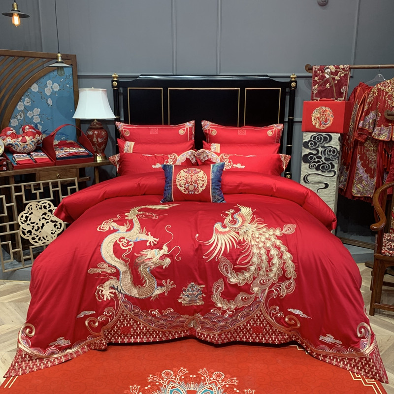 (总)2024新款刺绣长绒棉婚庆重磅新品多件套-龙凤吉祥 红,龙凤吉祥 红