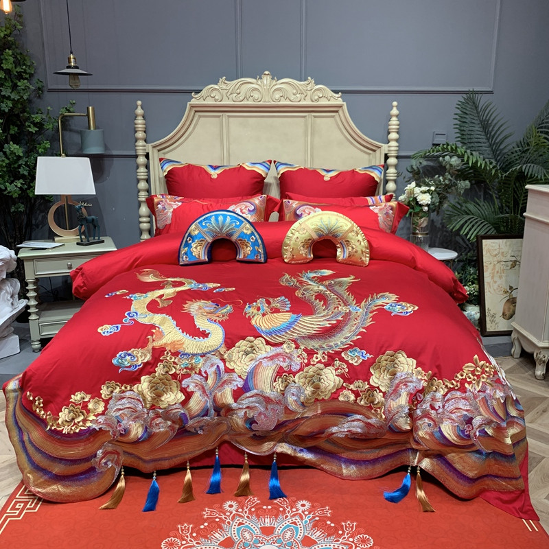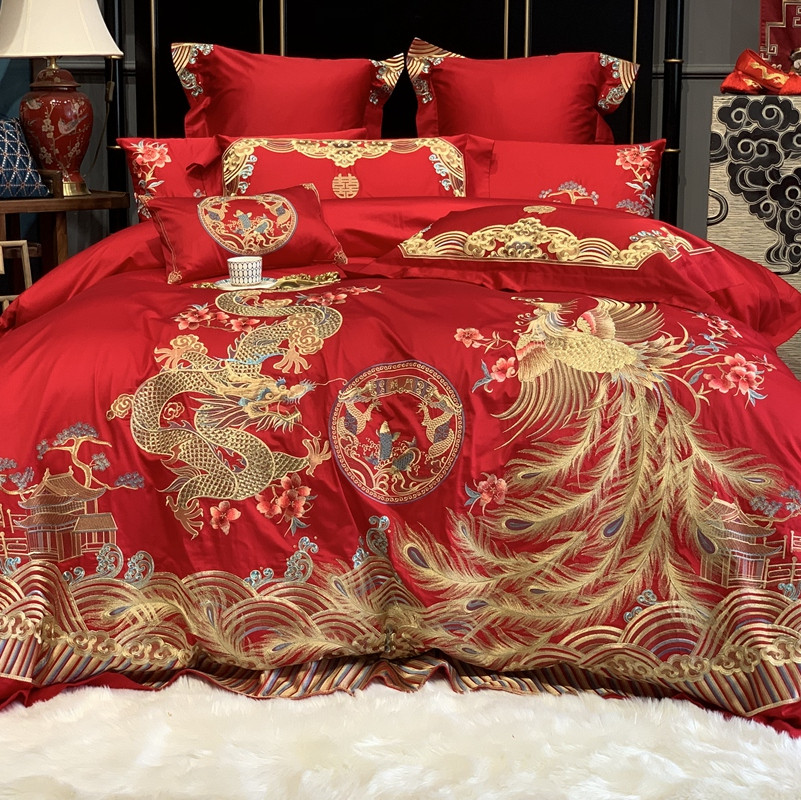 (总)2024新款刺绣长绒棉婚庆重磅新品多件套-金龙玉凤,金龙玉凤
