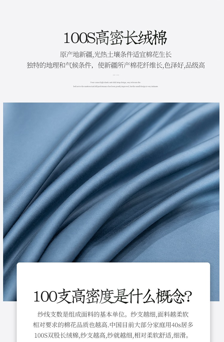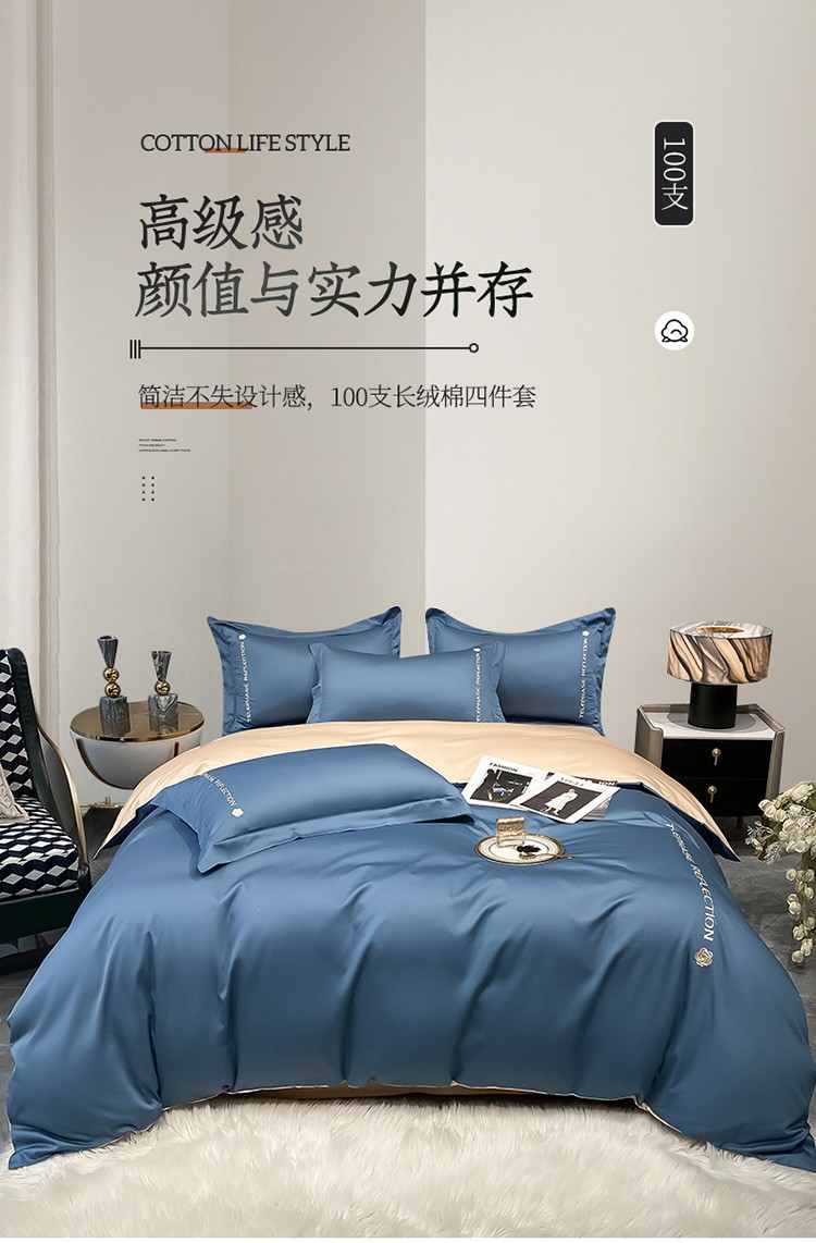 蓝巢家纺 2022新款100支长绒棉四件套 邂逅-宾利蓝