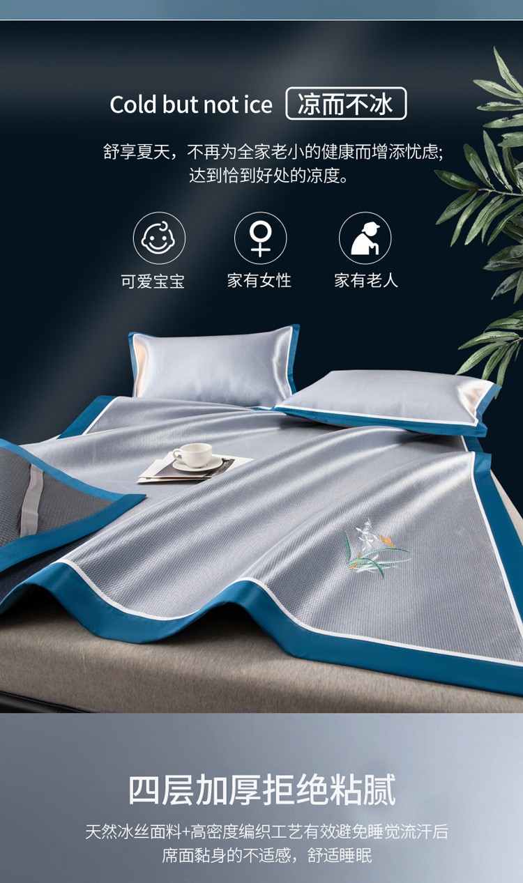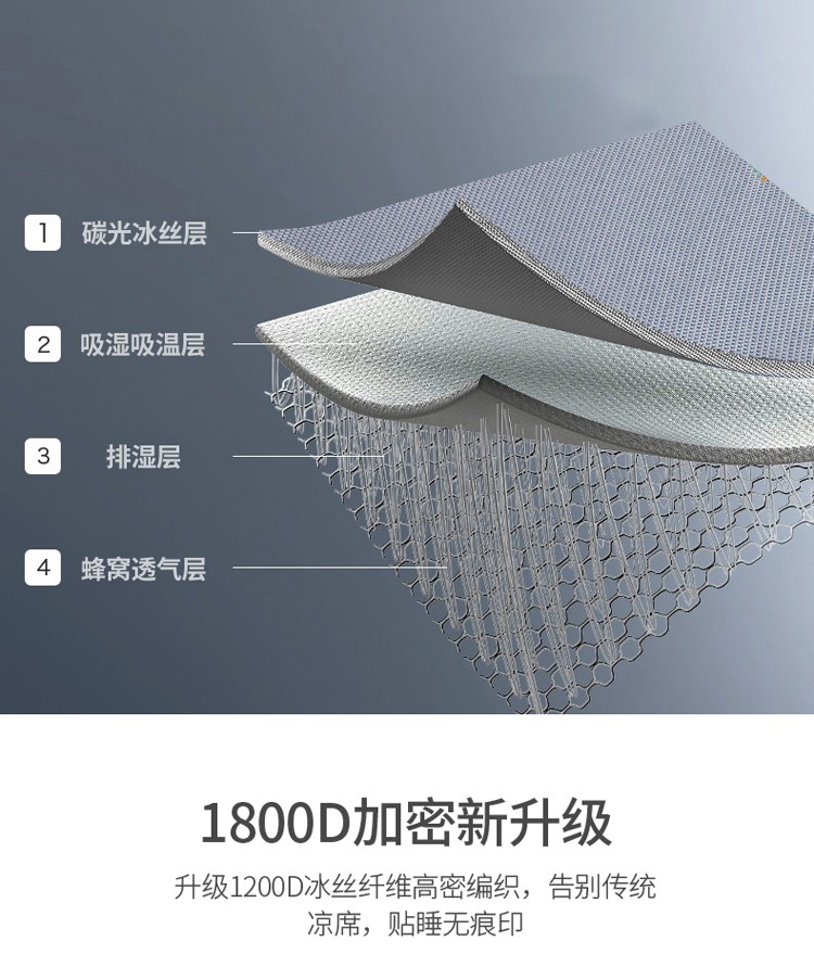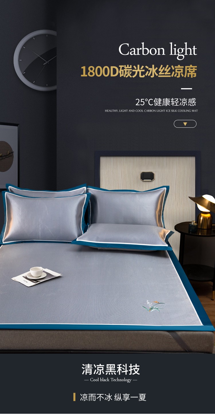 商品名称:欧冠 2022新款高端碳光1800冰丝席系列碳光冰丝-深蓝