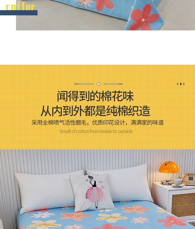 商品名称:杜先生 2023新款全棉加厚喷气活性磨毛圆角床单 花语时光-蓝