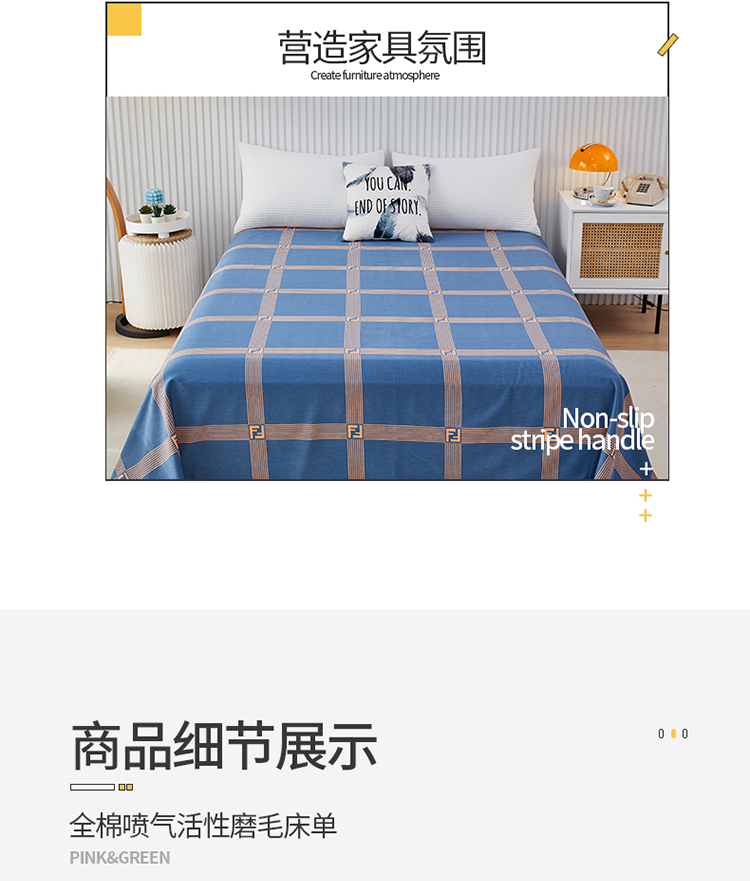 商品名称:杜先生 2023新款全棉加厚喷气活性磨毛圆角床单 艺术构想-灰