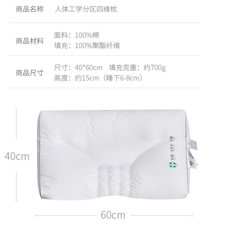 当前位置: 91家纺网 > 商品网购 > 枕头/枕芯/保健枕/颈椎枕 > 普通枕芯 > (总)昕科 2022新款人体工学分区四维枕枕芯枕头