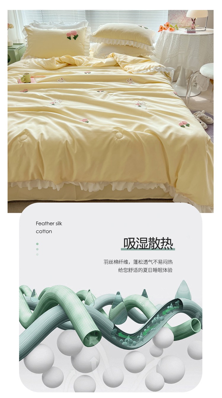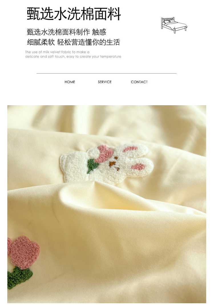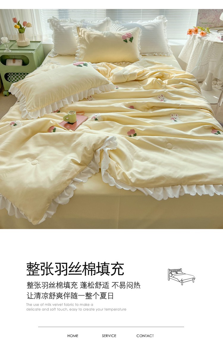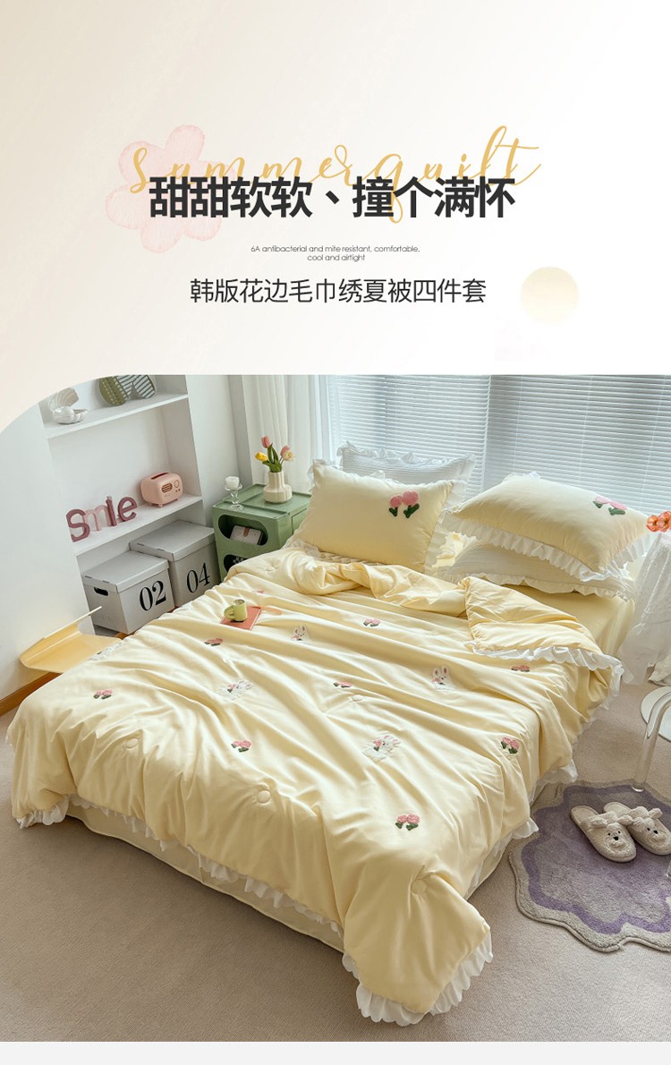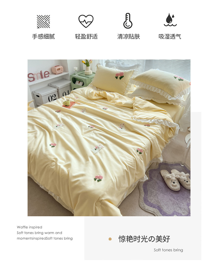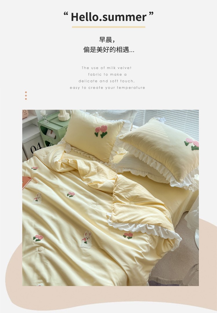 商品名称:沐慕 2022新款毛巾绣洛卡棉夏被四件套 花花白兔-米黄
