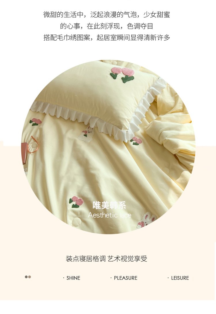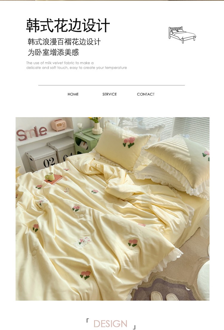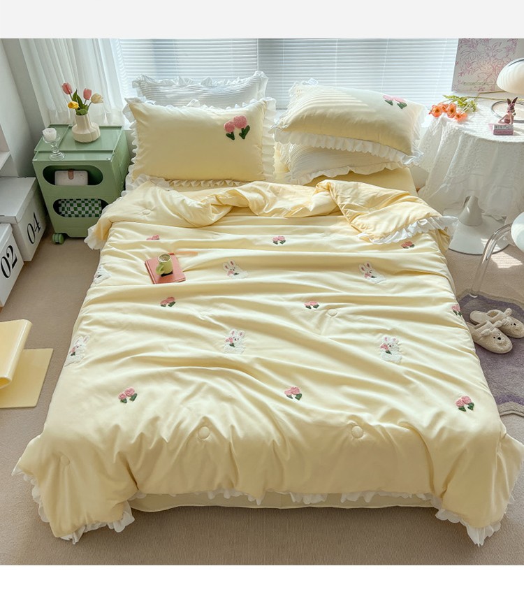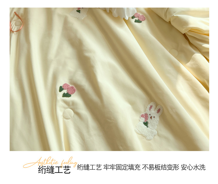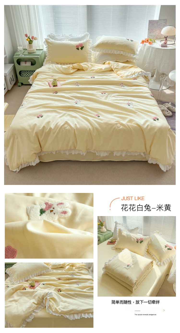沐慕 2022新款毛巾绣洛卡棉夏被四件套 花花白兔-米黄
