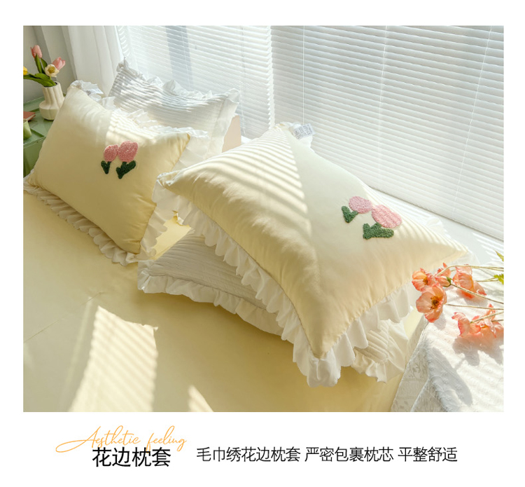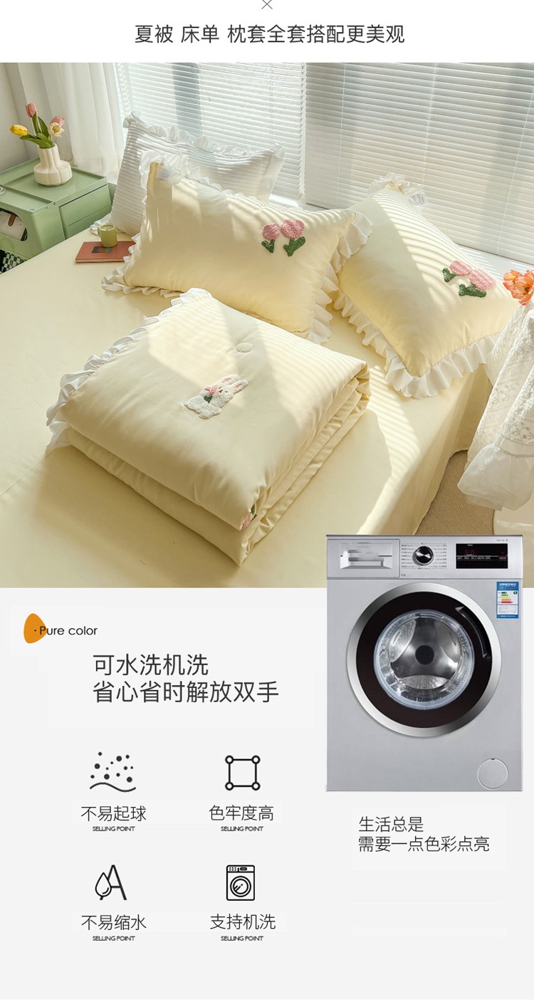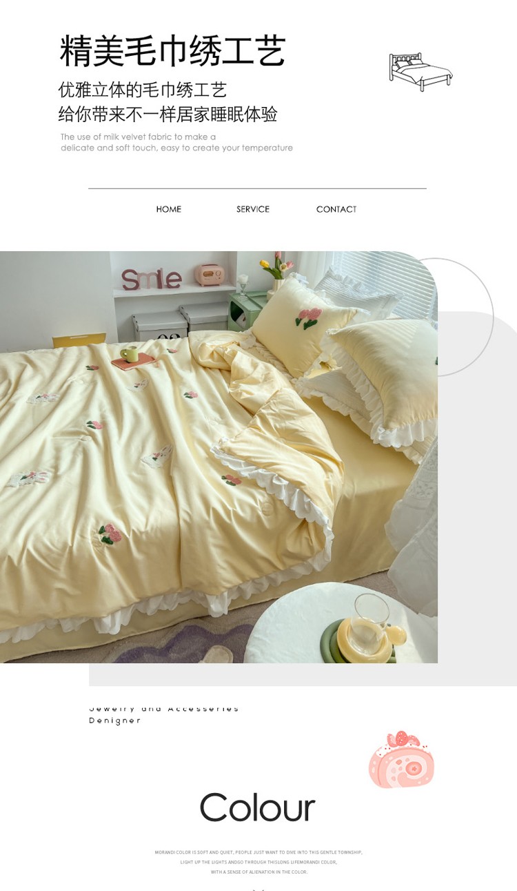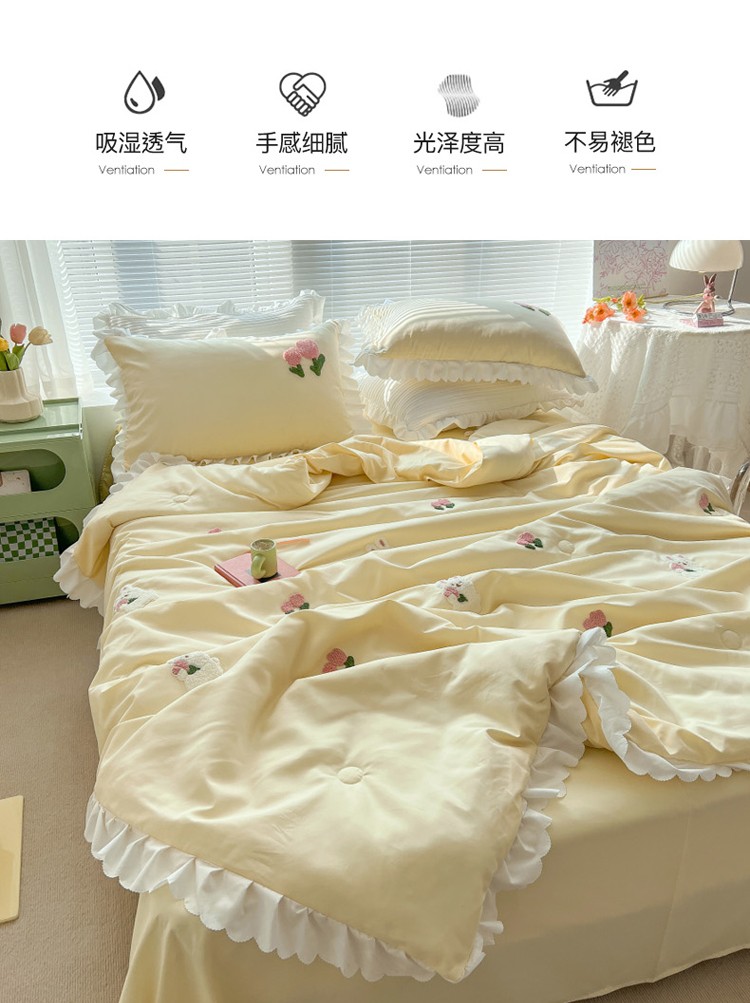 沐慕 2022新款毛巾绣洛卡棉夏被四件套 花花白兔-米黄