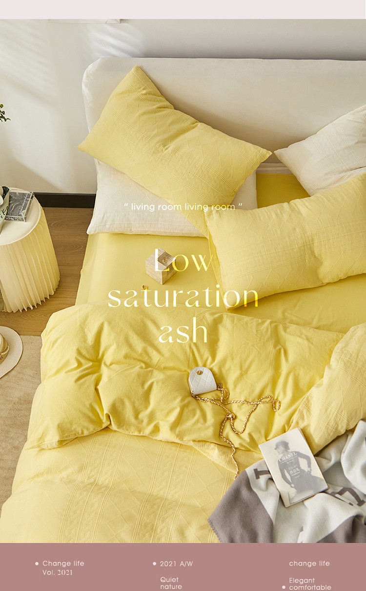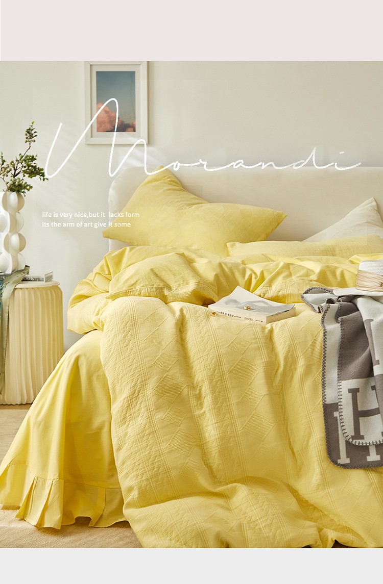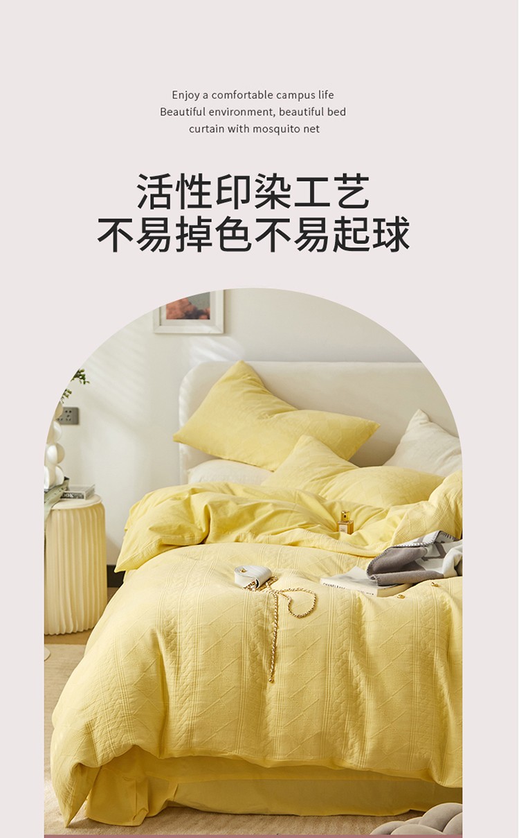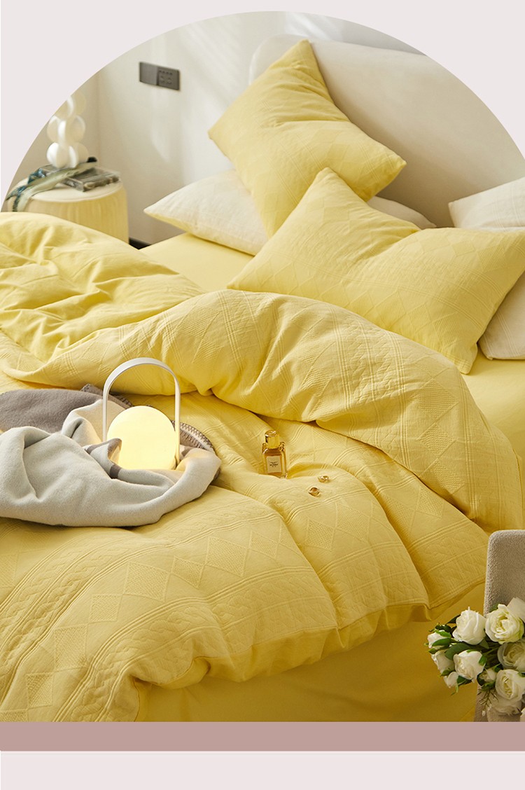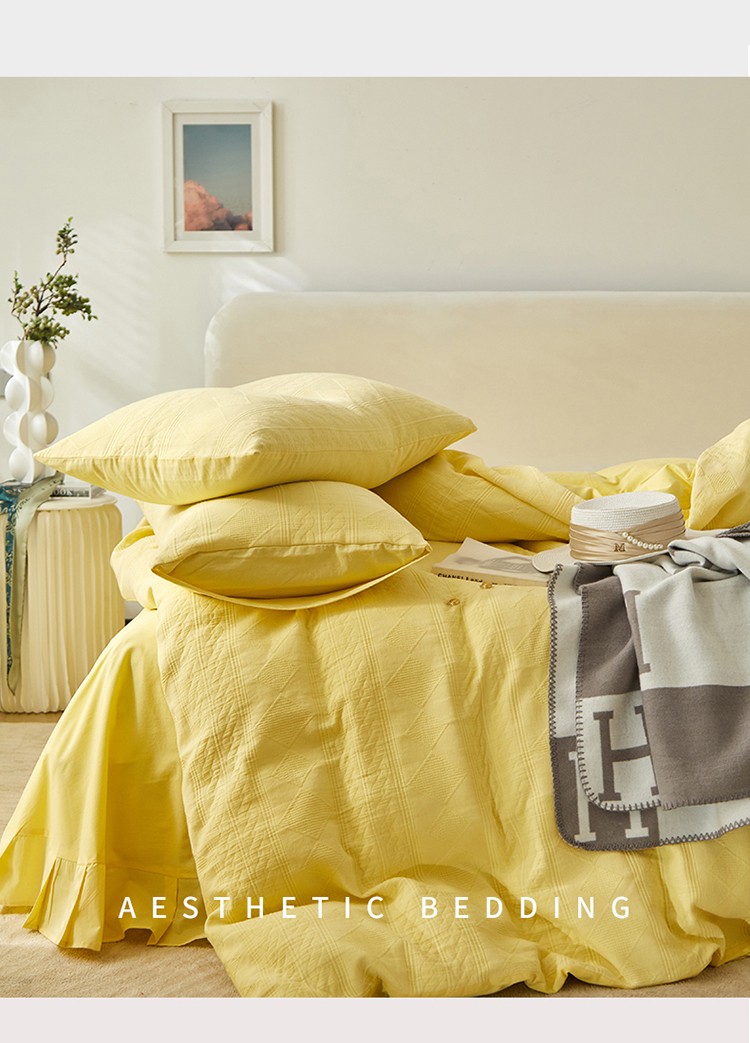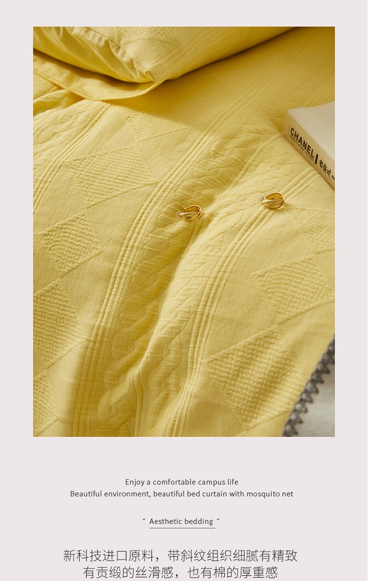 名品优仓 2023新款纯棉水洗棉三层纱提花四件套 狡花黄