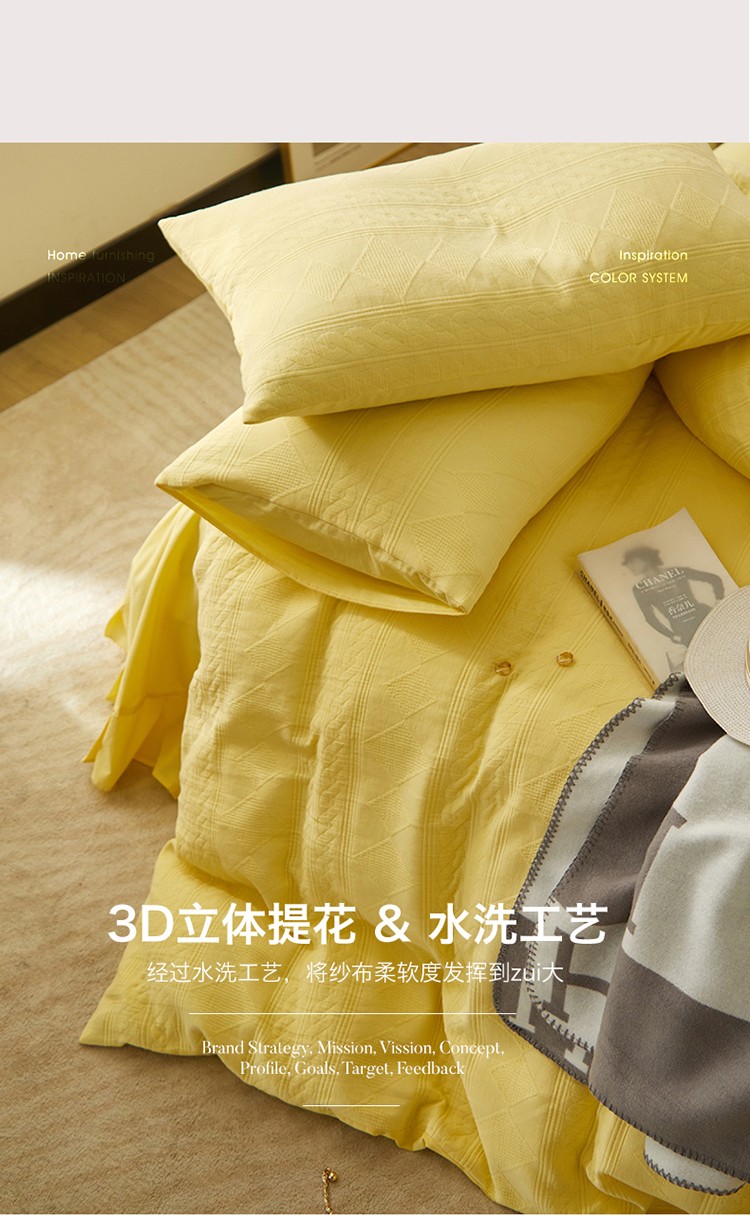 商品名称:名品优仓 2023新款纯棉水洗棉三层纱提花四件套 狡花黄