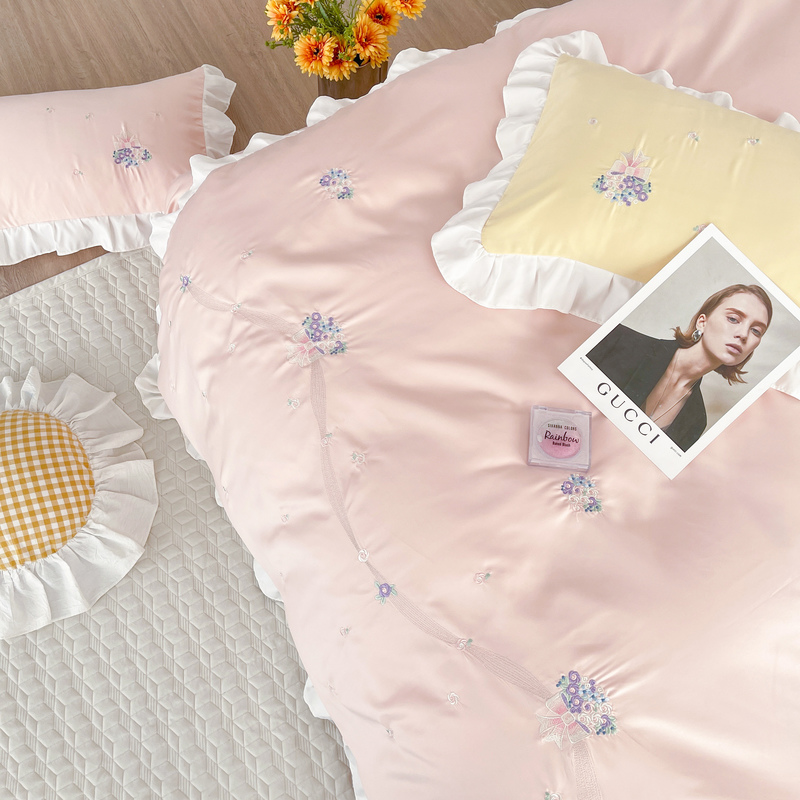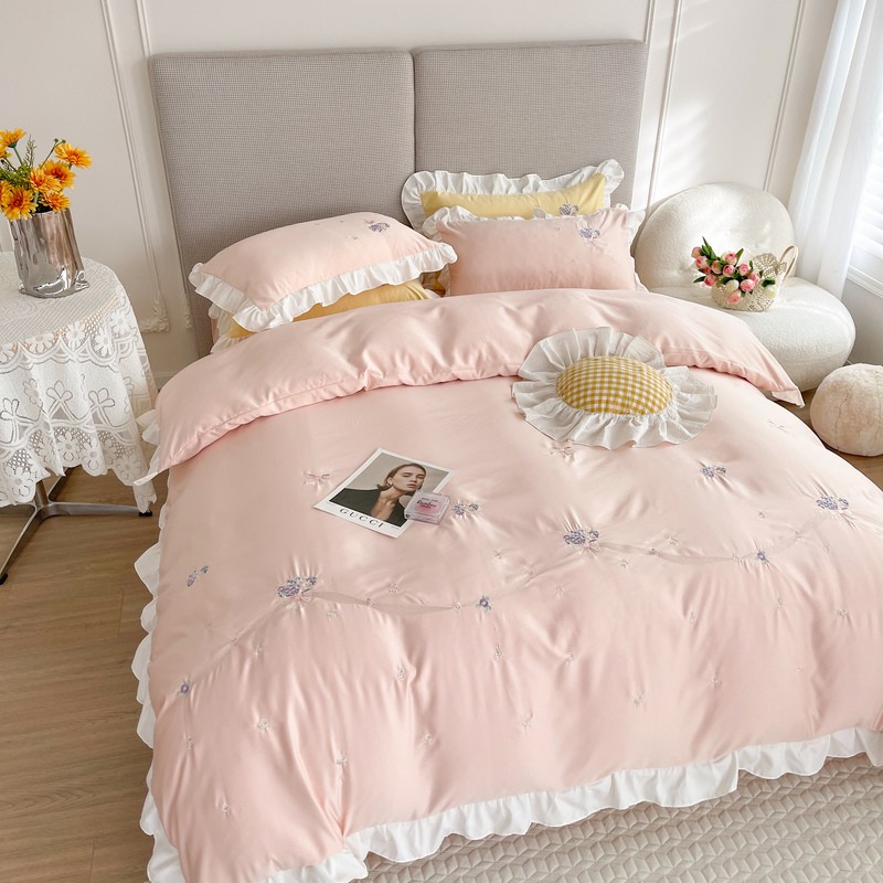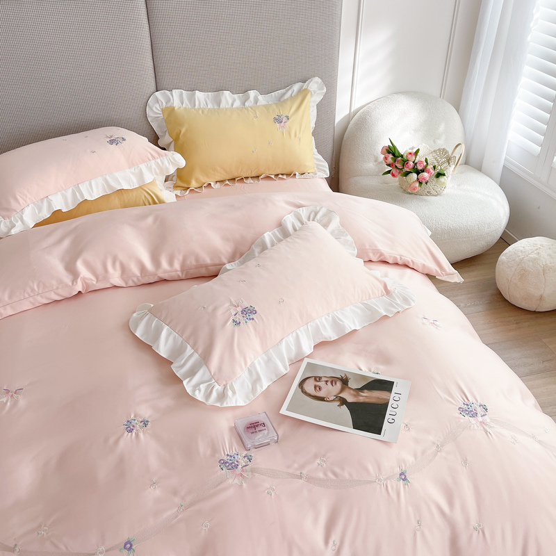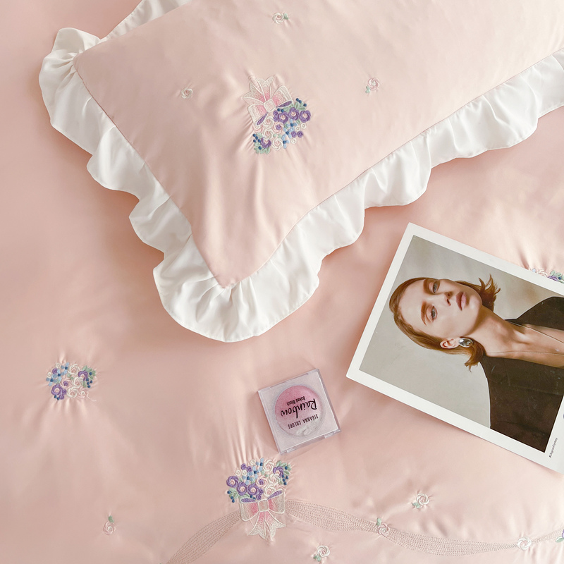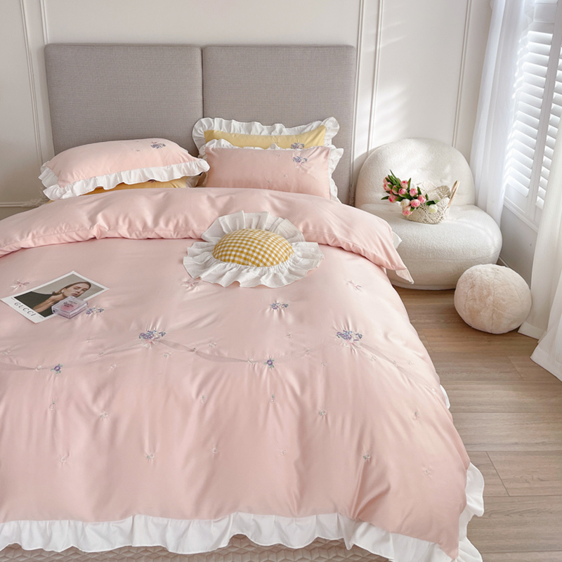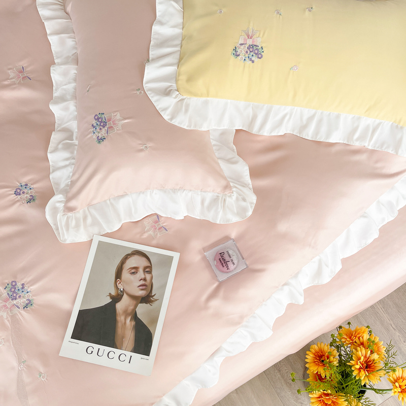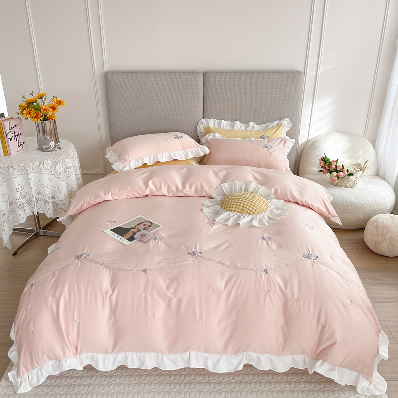 优悦 2022新款花边款冰丝刺绣四件套 花悦-樱花粉