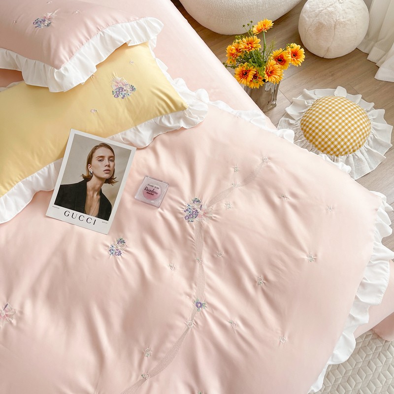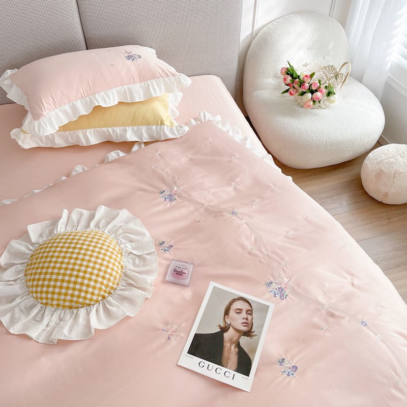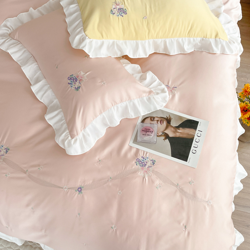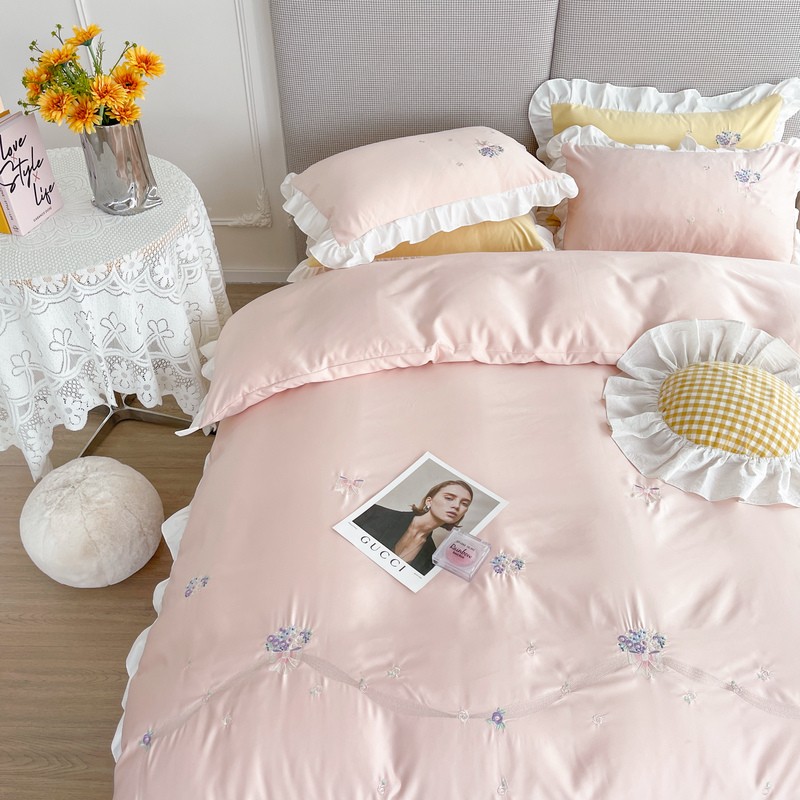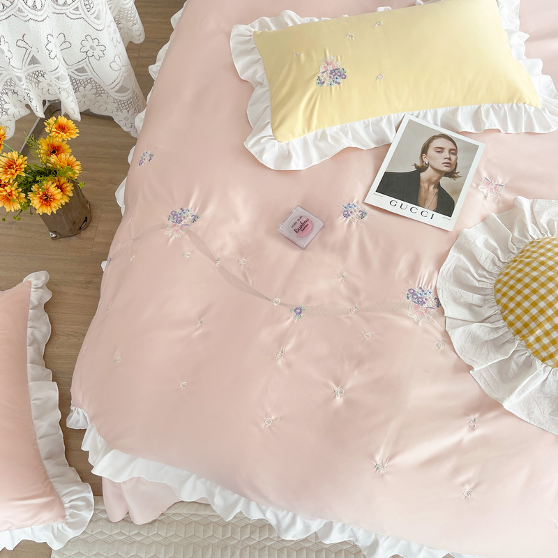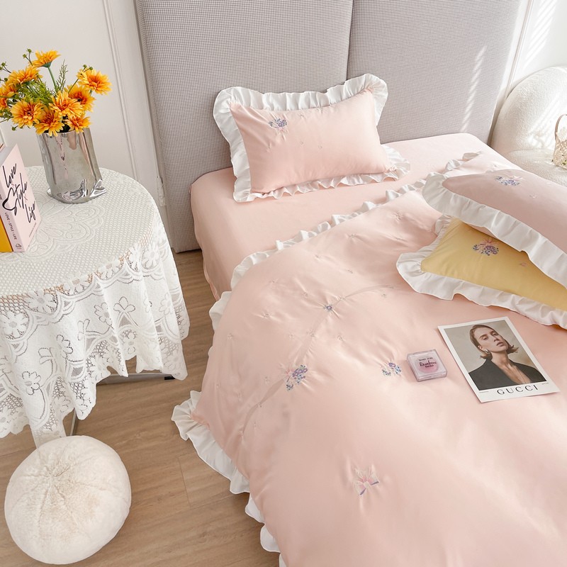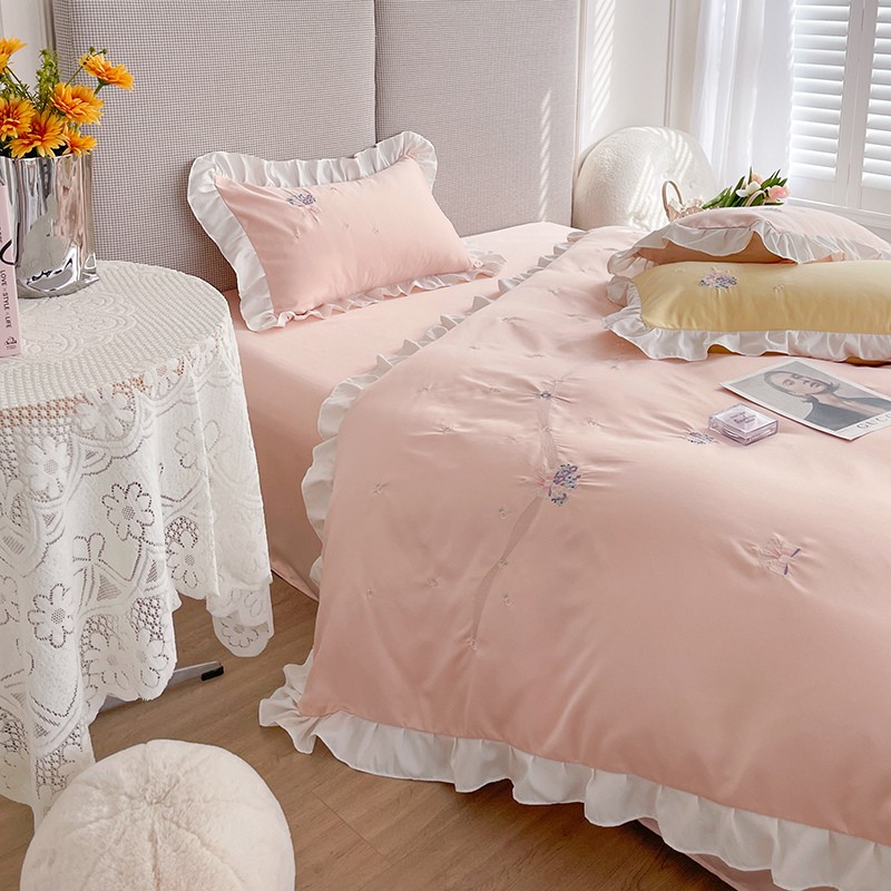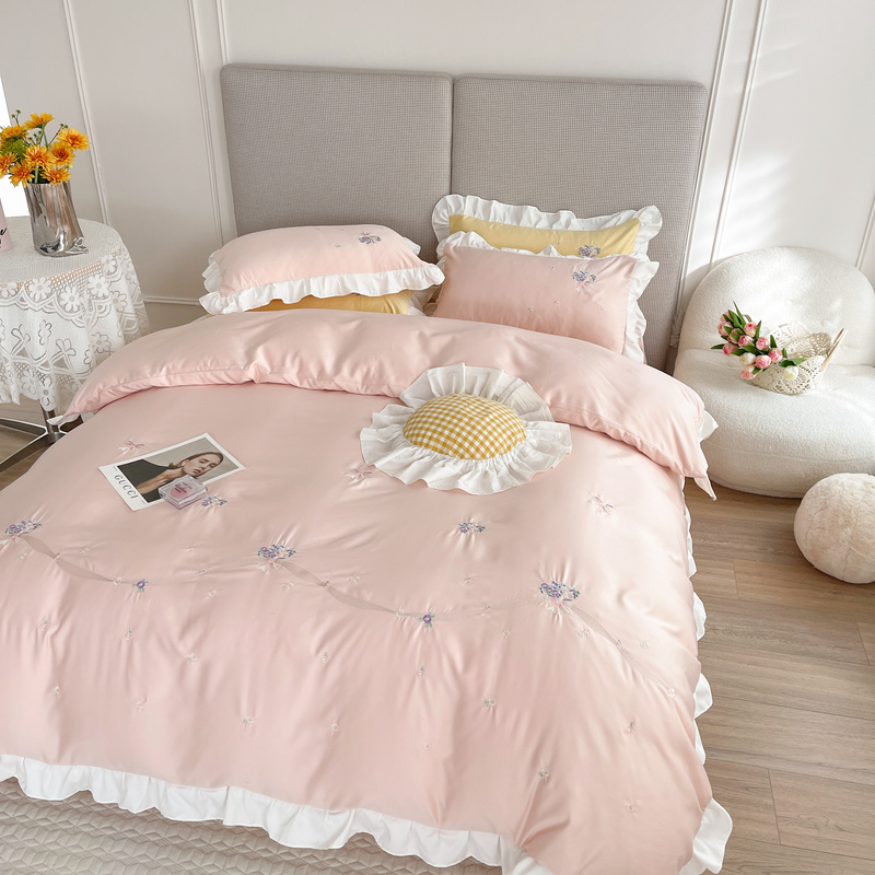 优悦 2022新款花边款冰丝刺绣四件套 花悦-樱花粉