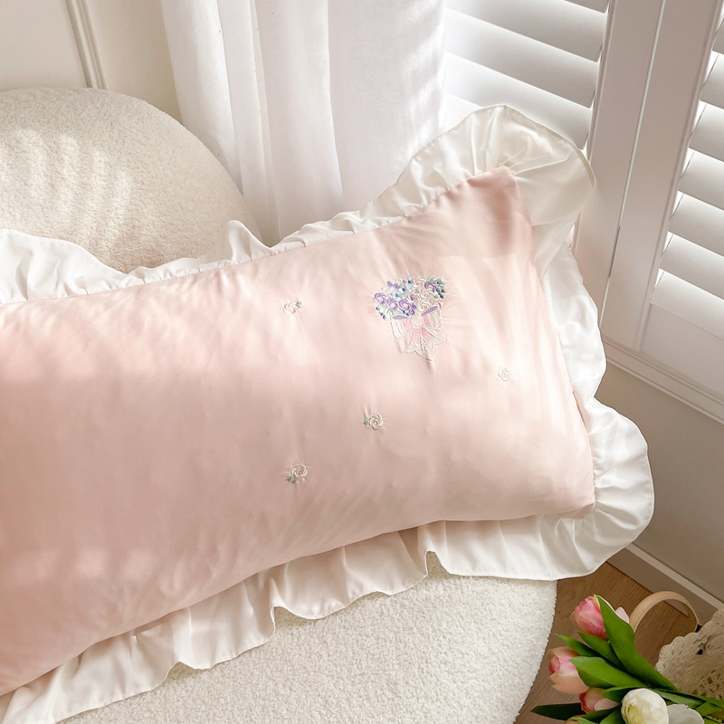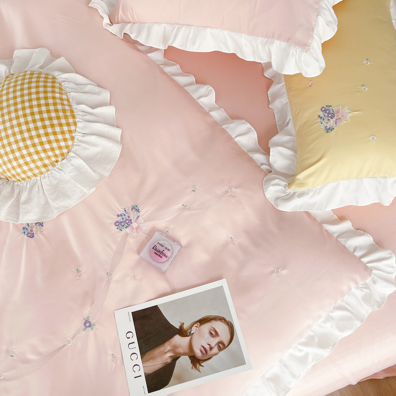 商品名称:优悦 2022新款花边款冰丝刺绣四件套 花悦-樱花粉