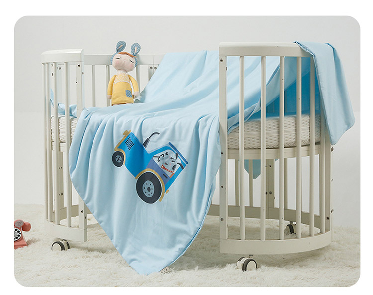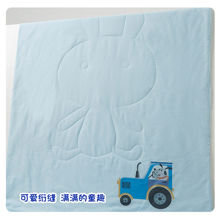 (总)喜多兔儿童家纺 2025春夏新款小软萌贴布绣纱布被,粉色软萌小兔,卡其色软萌小熊,蓝色软萌小象,绿色软萌恐龙,组合图仅供展示