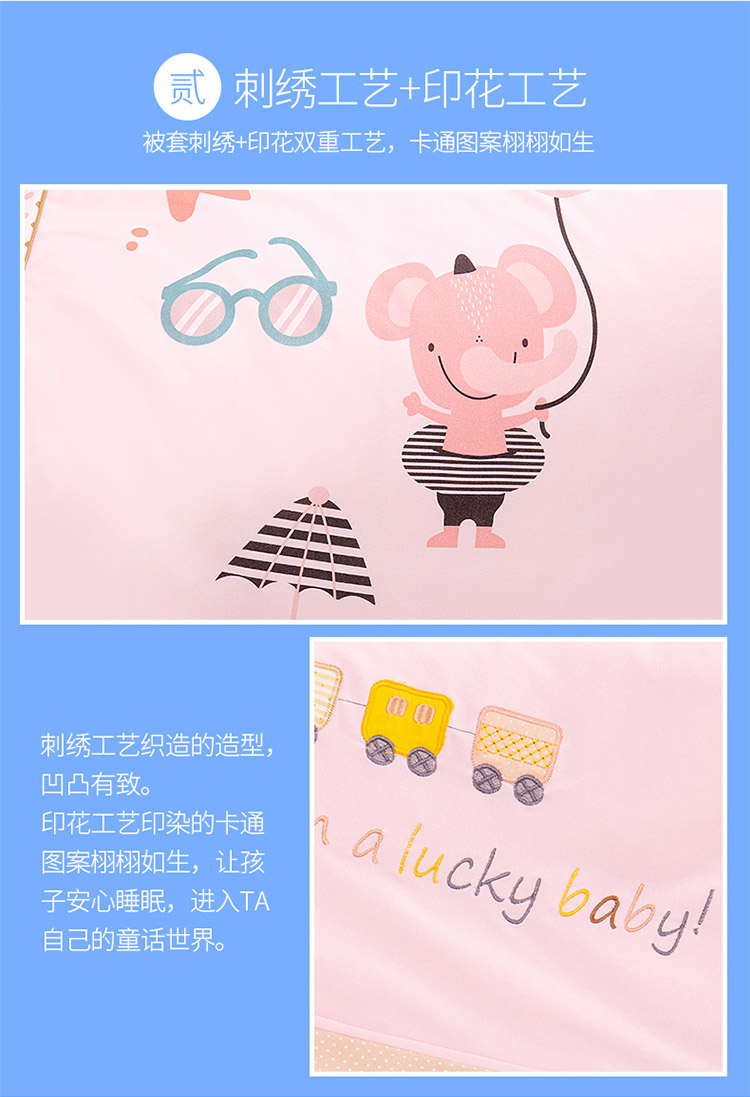 (总)2024新款全棉小甜心纯棉绣花幼儿园被子三件套,粉粉刺球,粉色小猫咪凯特,湖蓝色小兔子哈尼,黄色小狗哈利,黄色小狮子杰森,蓝色小飞象,蓝色小狗汤米,绿色搞怪小狐狸