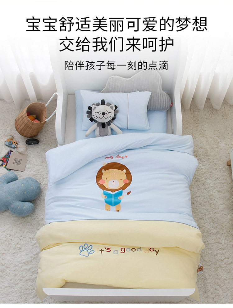 (总)喜多兔儿童家纺 2025新款小梦幻纯棉针织棉紧密纺绣花幼儿园被子三件套,组合图仅供展示,粉色梦幻小狗狗,粉色梦幻小兔,黄色梦幻小熊猫,黄色梦幻小鸭子,蓝色梦幻小狮子,蓝色梦幻小熊,绿色梦幻魔法小猫咪,绿色梦幻小恐龙