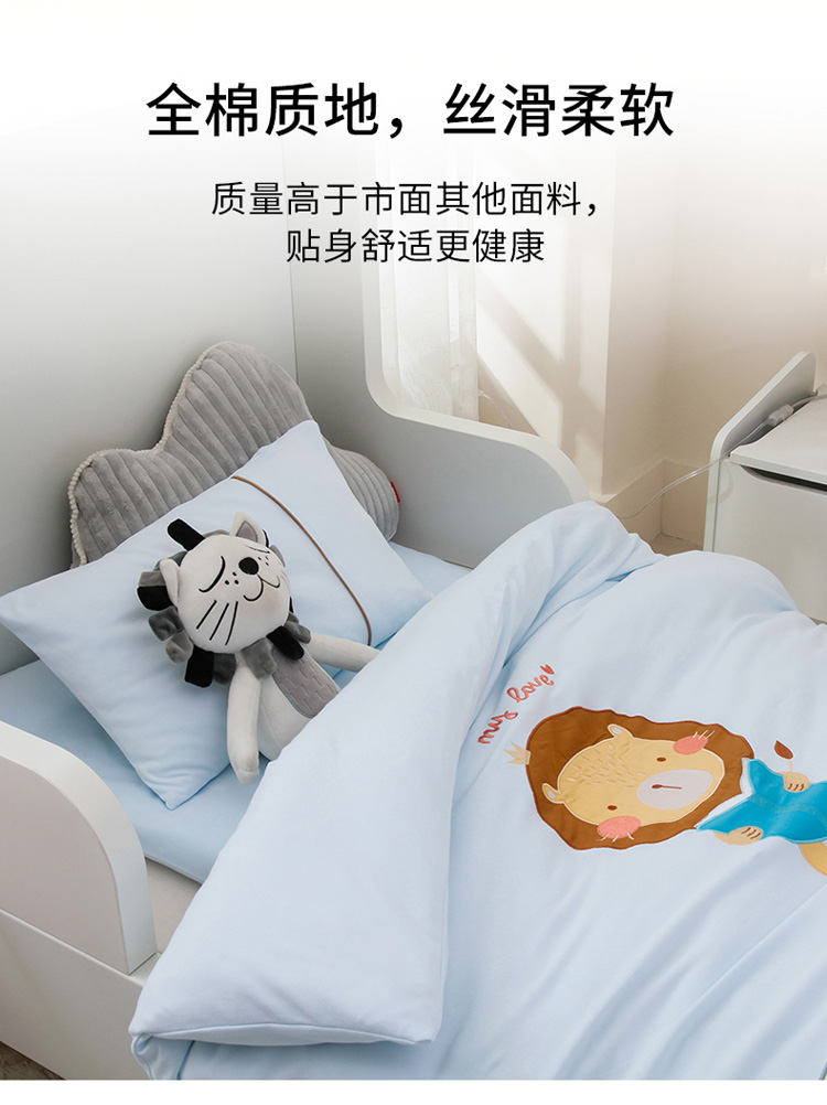 (总)喜多兔儿童家纺 2025新款小美好13372纯棉绣花幼儿园被子三件套多件套,组合图仅供展示,粉色美好小猫咪,粉色美好小兔子,黄色美好卡皮巴拉,黄色美好小狮子,蓝色美好独角兽,蓝色美好小熊,绿色美好小恐龙,绿色美好小青蛙
