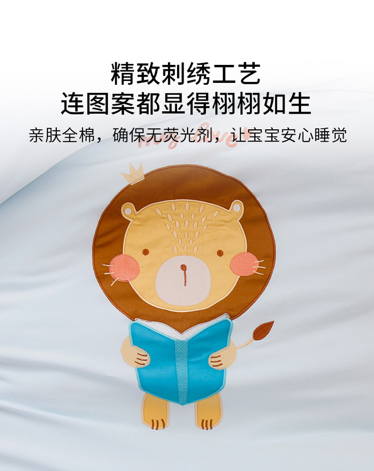 商品名称:喜多兔 2022新款全棉针织三件套床品套件-神奇伙伴 蓝色读书小狮子