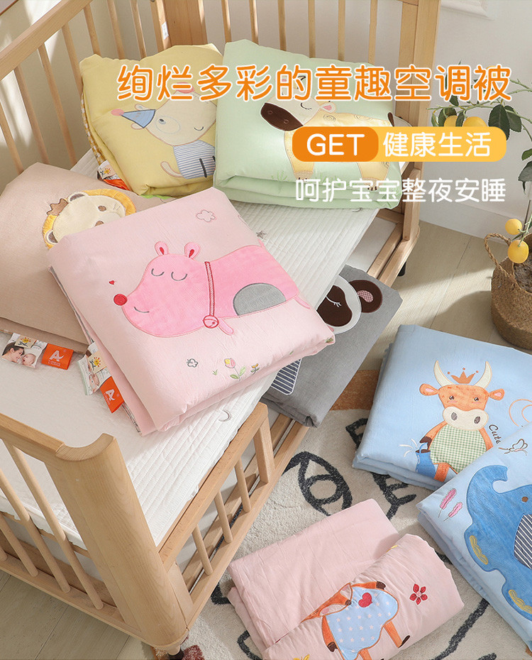 (总)喜多兔儿童家纺 2024新款小轻柔纱布纯棉双层纱空调被,灰色Q小狗,灰色萌熊猫,粉色Q小兔,粉色萌企鹅,绿色Q恐龙,绿色萌小牛,蓝色Q企鹅,蓝色萌小狮,黄色Q小鸡,黄色萌小鹿