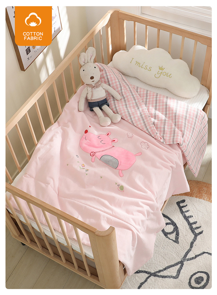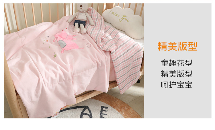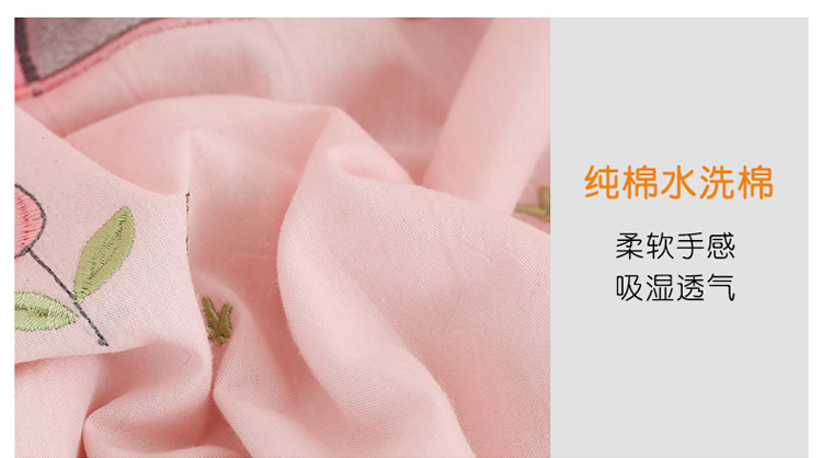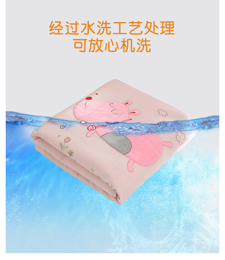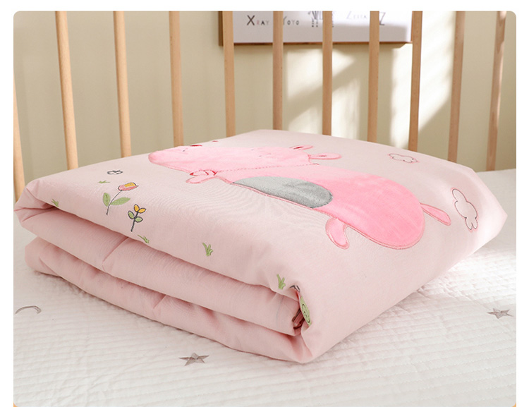 (总)喜多兔儿童家纺 2025春夏新款小软萌贴布绣纱布被,粉色软萌小兔,卡其色软萌小熊,蓝色软萌小象,绿色软萌恐龙,组合图仅供展示