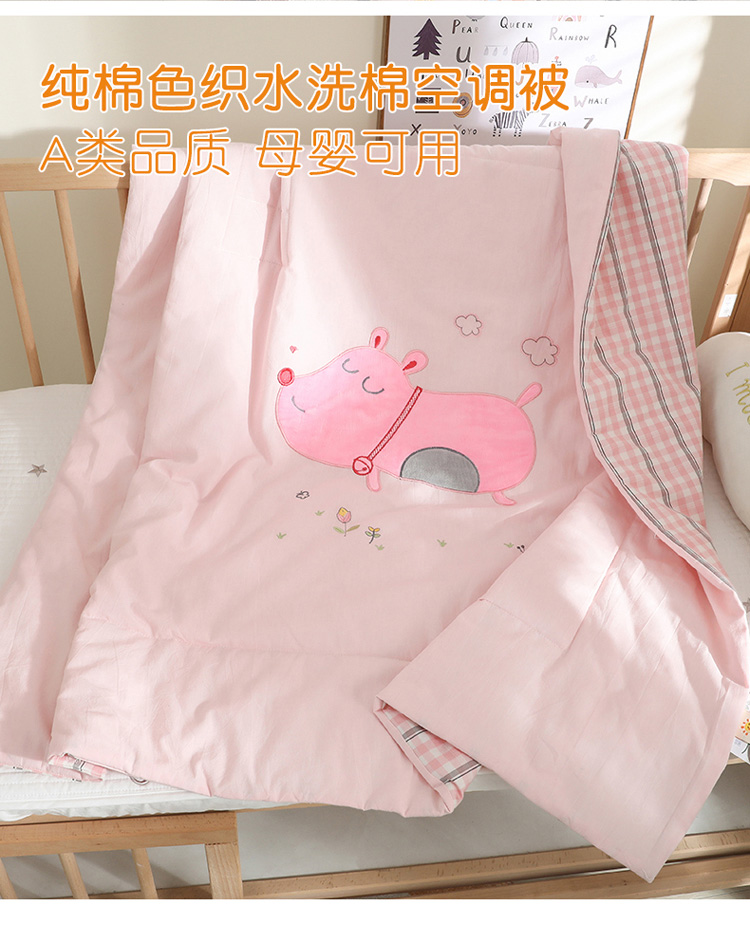 (总)喜多兔2025新款高精密人字棉贴布绣奶里奶气夏被夏凉被,粉色奶气小兔,黄色奶气小狗,咖色奶气小熊,蓝色奶气小象,绿色奶气小猫