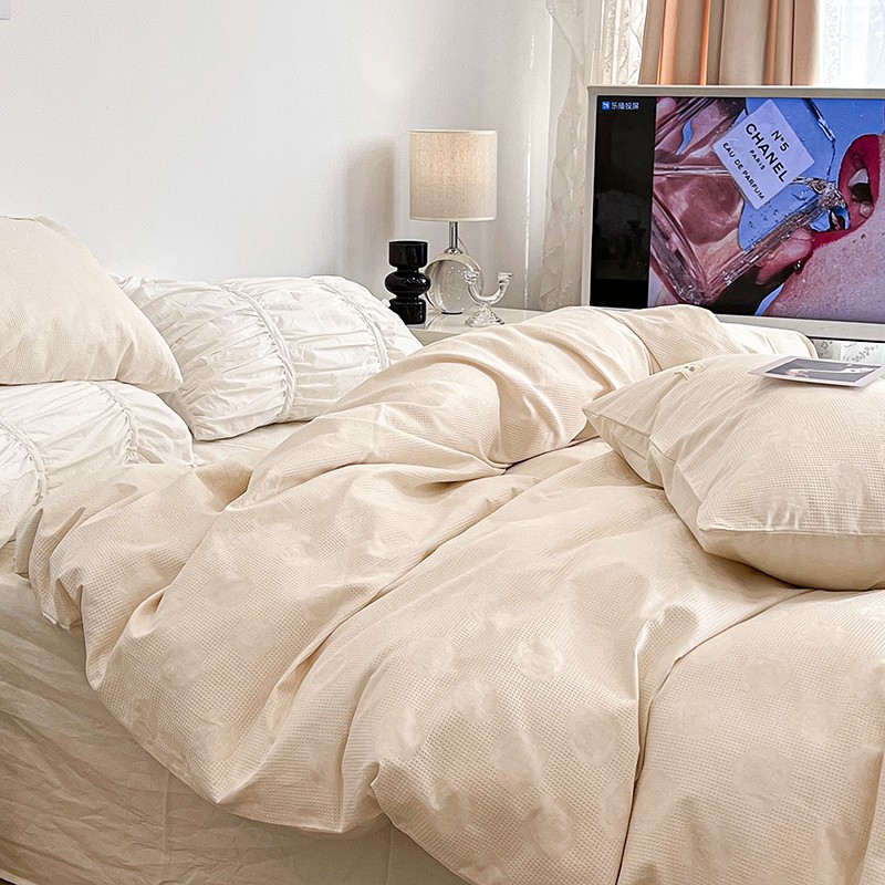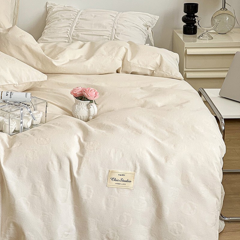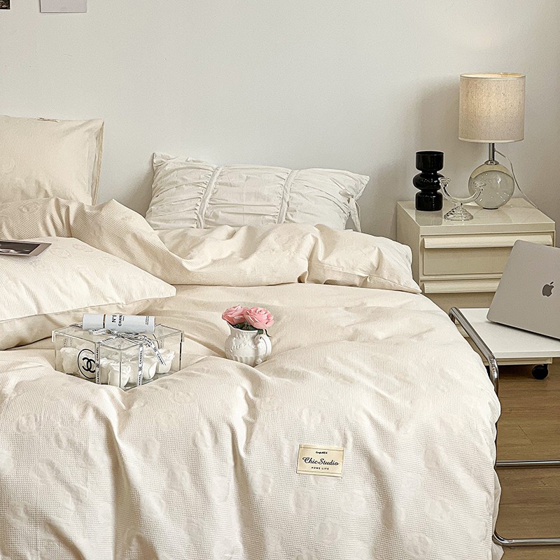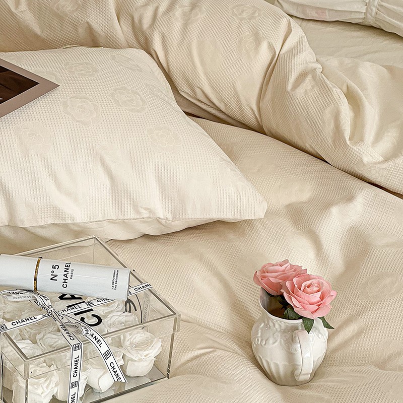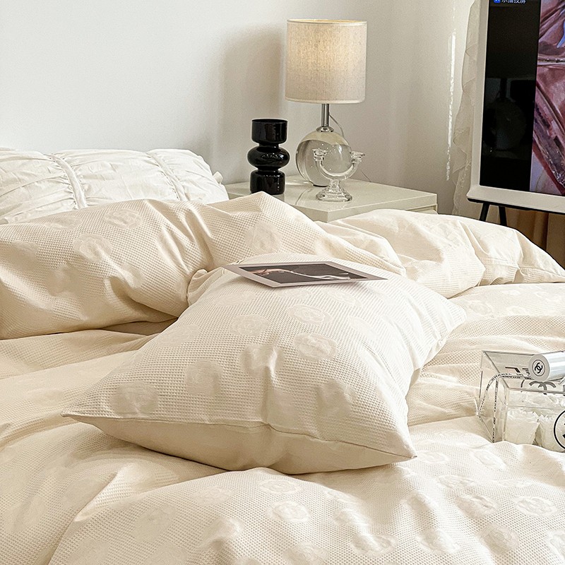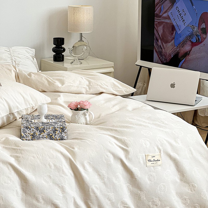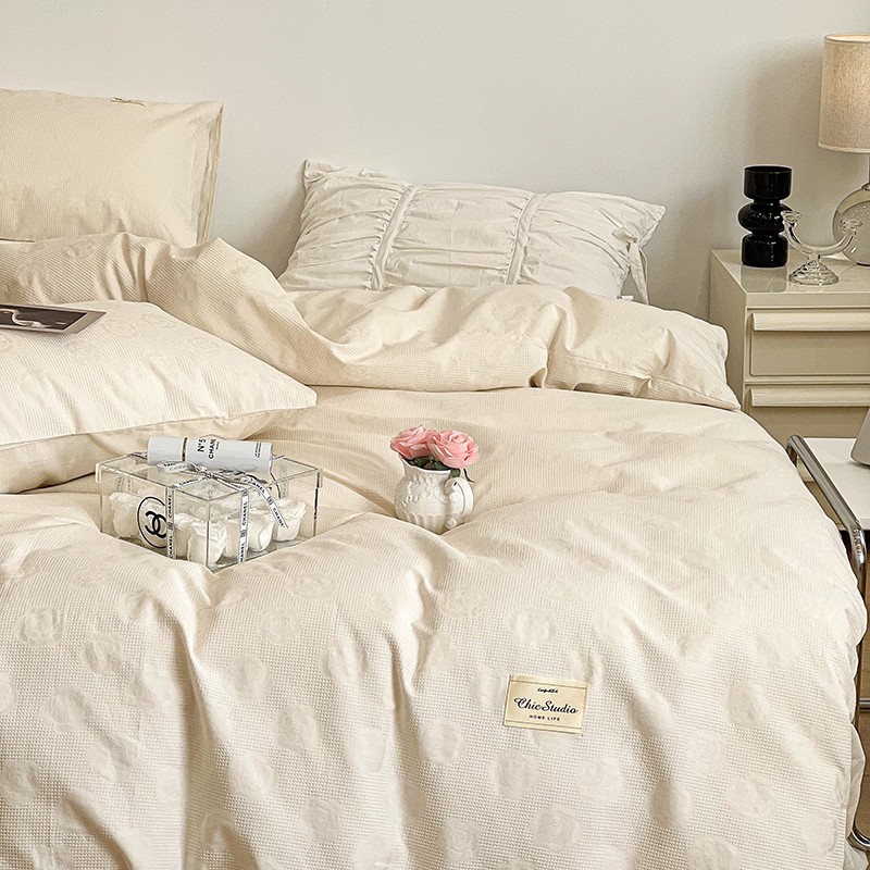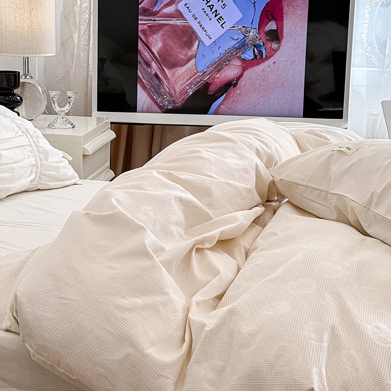 昔可 2022新款60支水洗棉华夫格提花四件套拍法一 山茶米白
