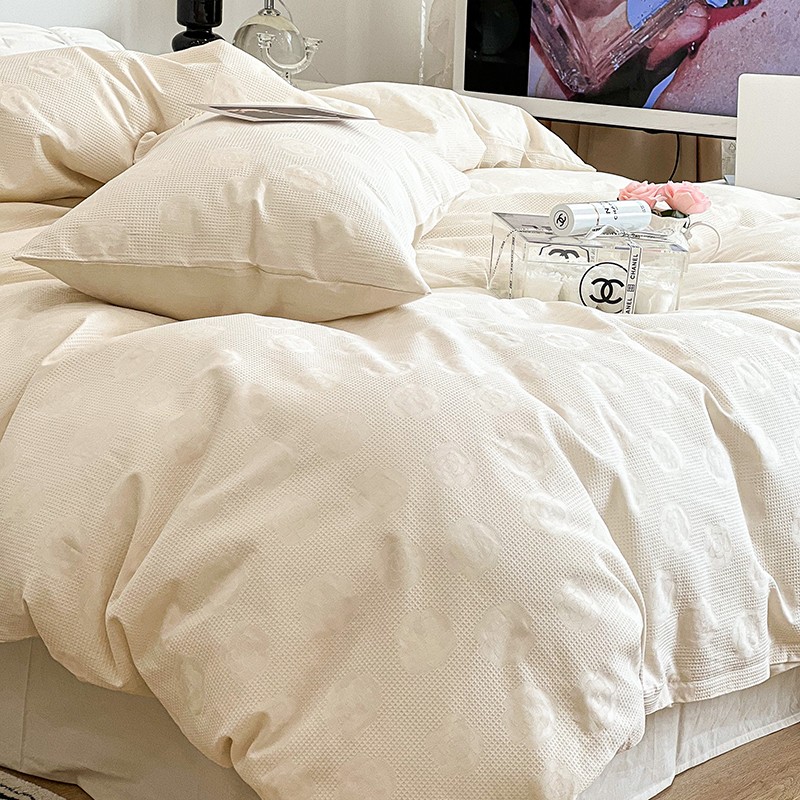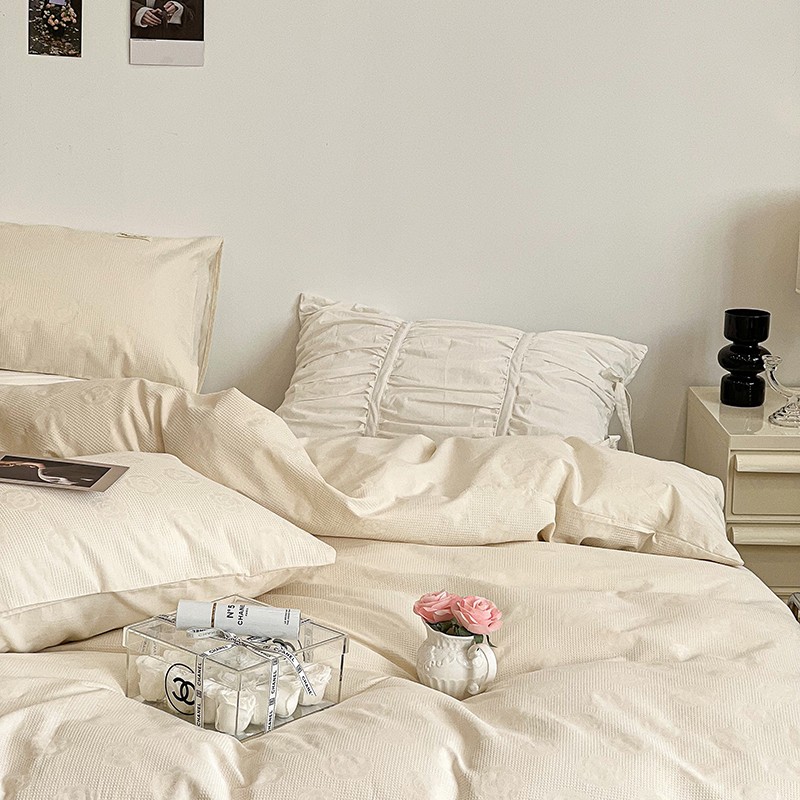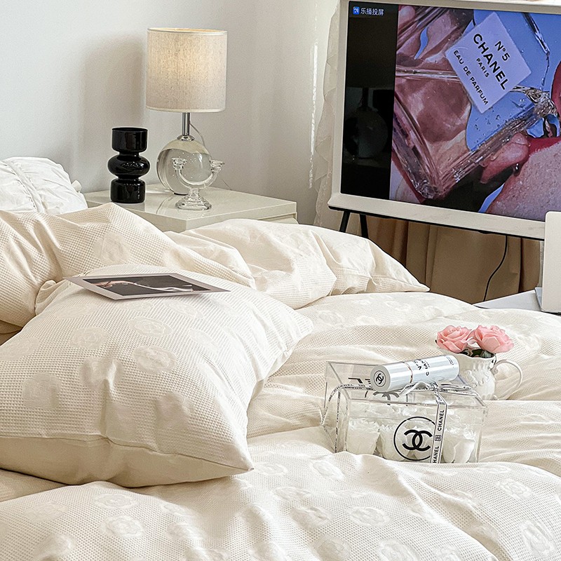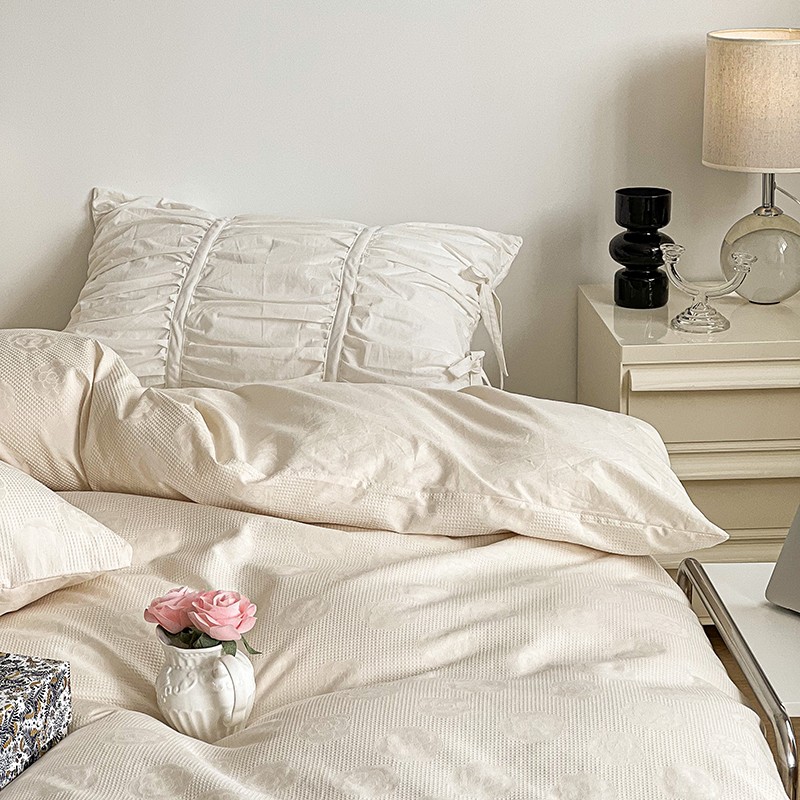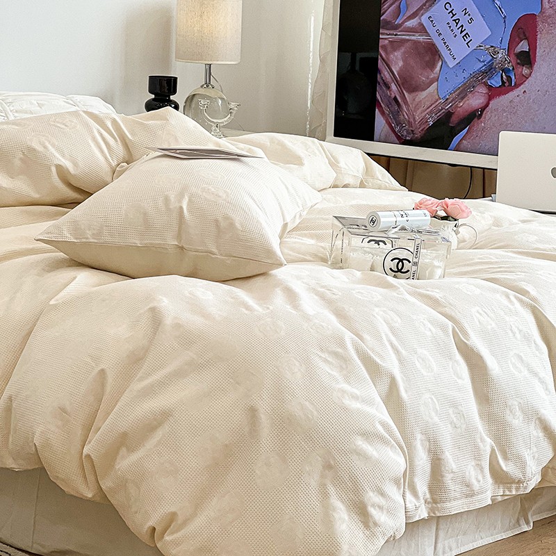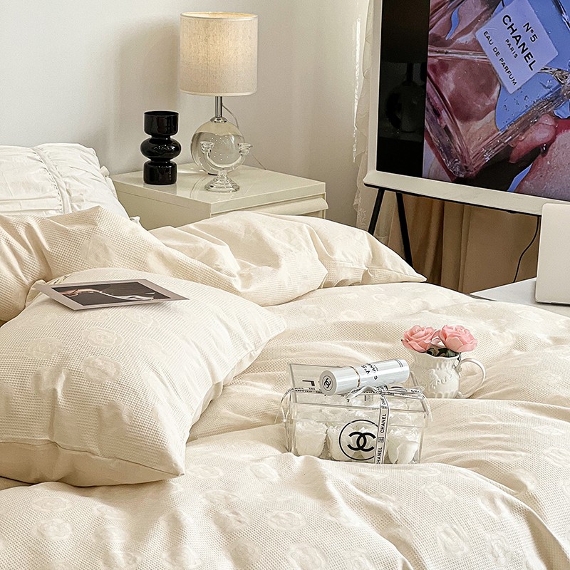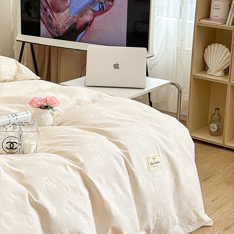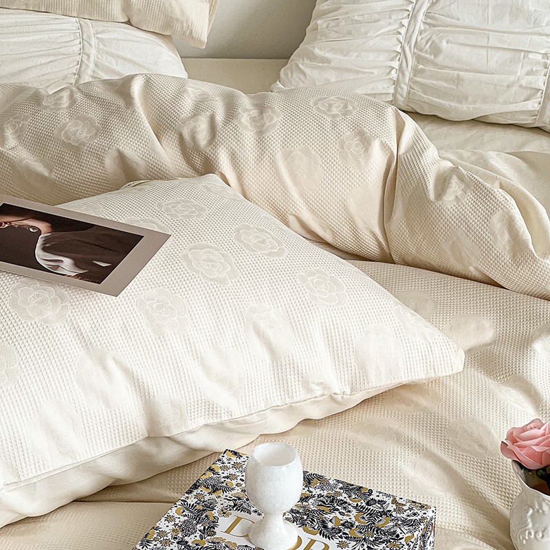 昔可 2022新款60支水洗棉华夫格提花四件套拍法一 山茶米白