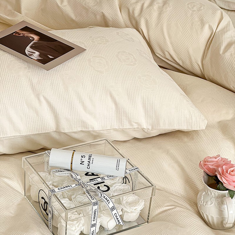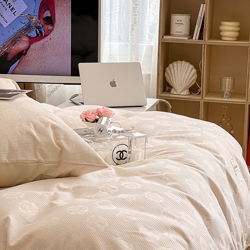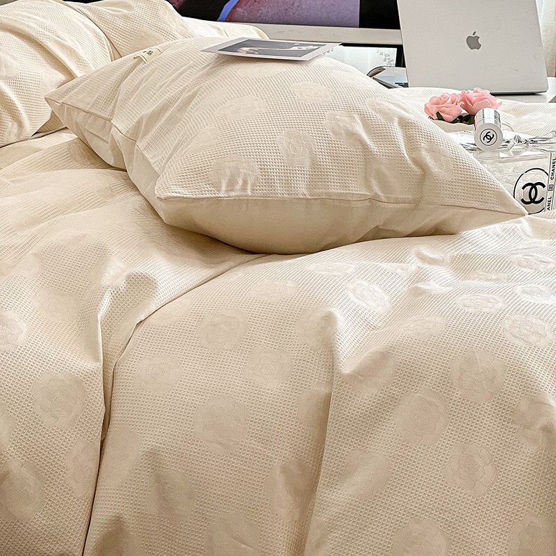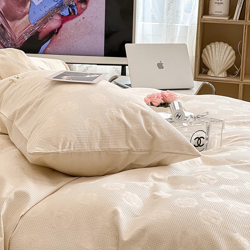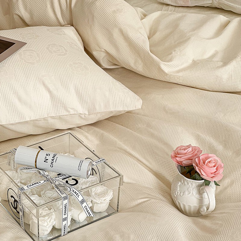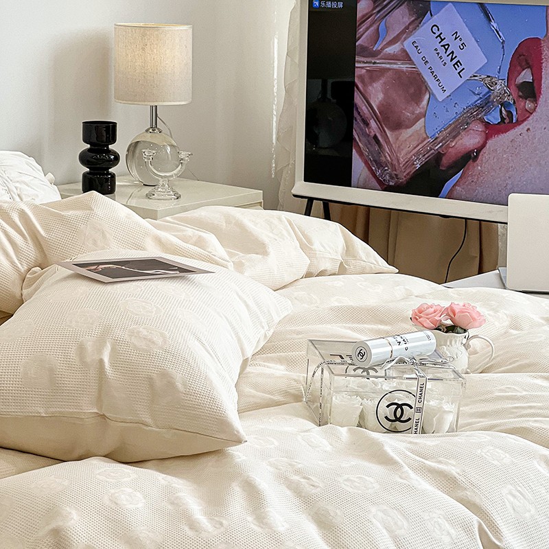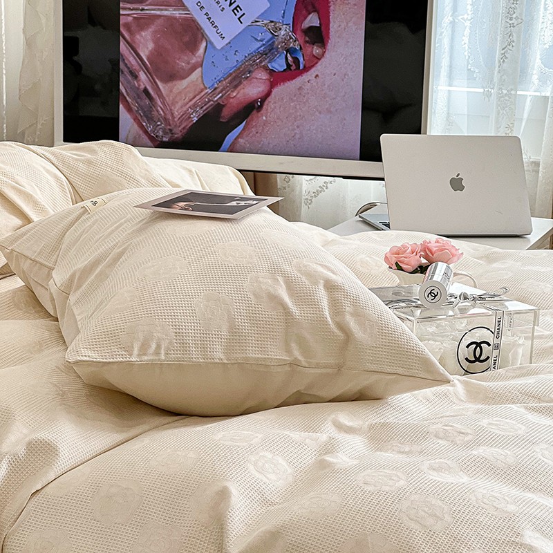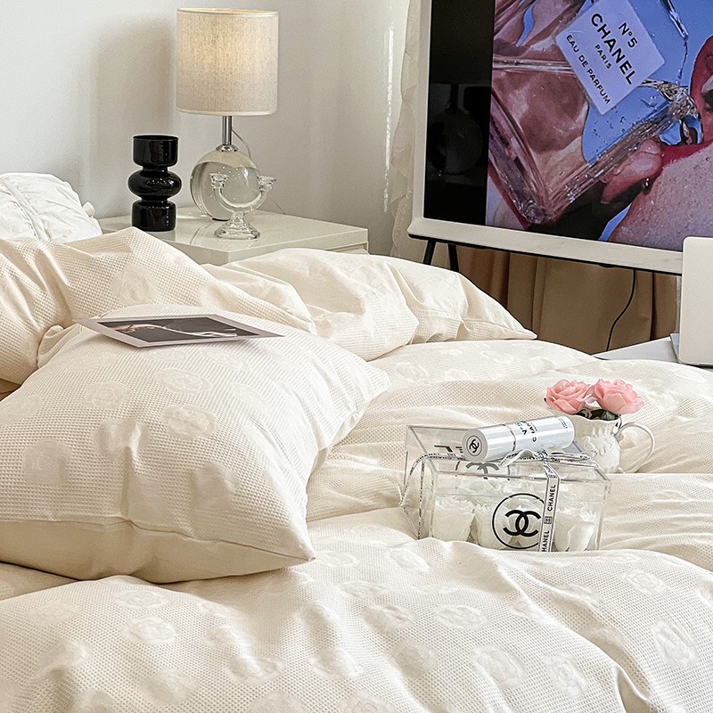 昔可 2022新款60支水洗棉华夫格提花四件套拍法一 山茶米白