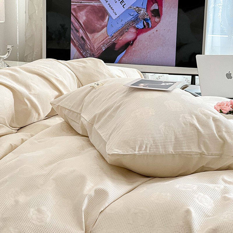 商品名称:昔可 2022新款60支水洗棉华夫格提花四件套拍法一 山茶米白