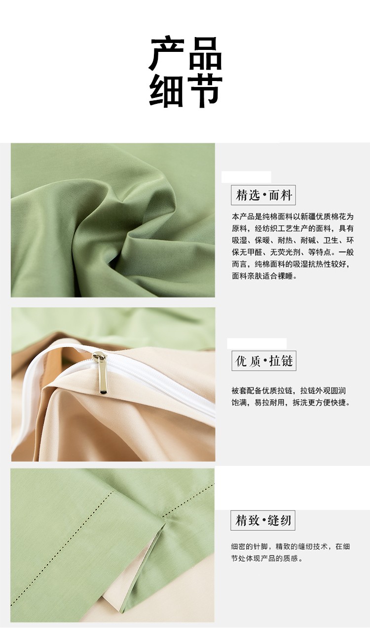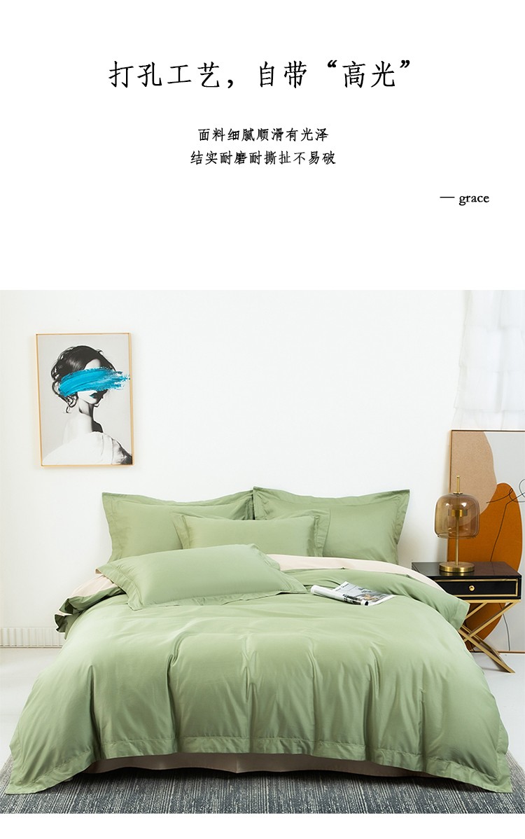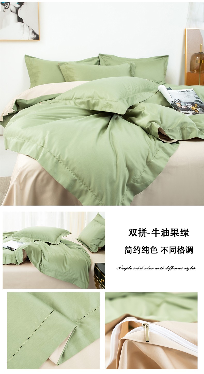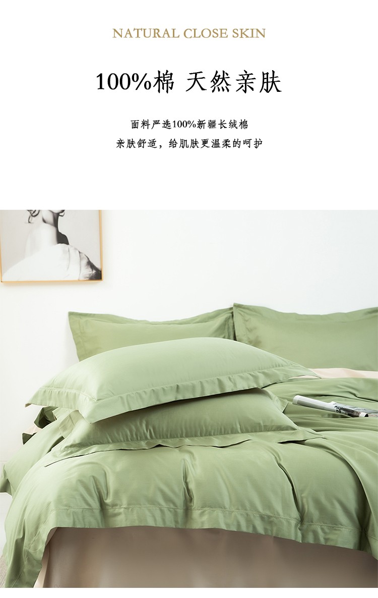 商品名称:网客 2024新款100支长绒棉四件套 双拼-牛油果绿