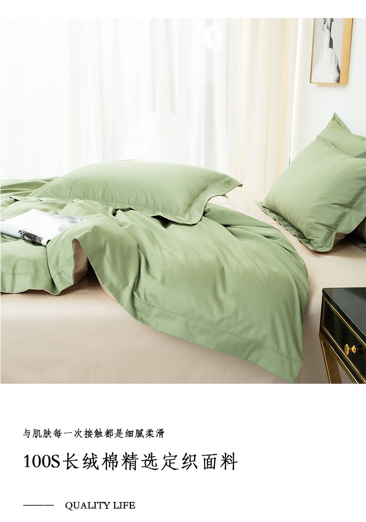 网客 2024新款100支长绒棉四件套 双拼-牛油果绿