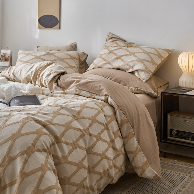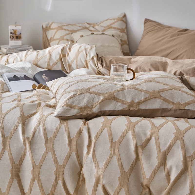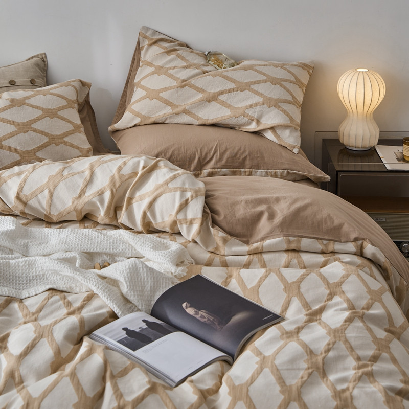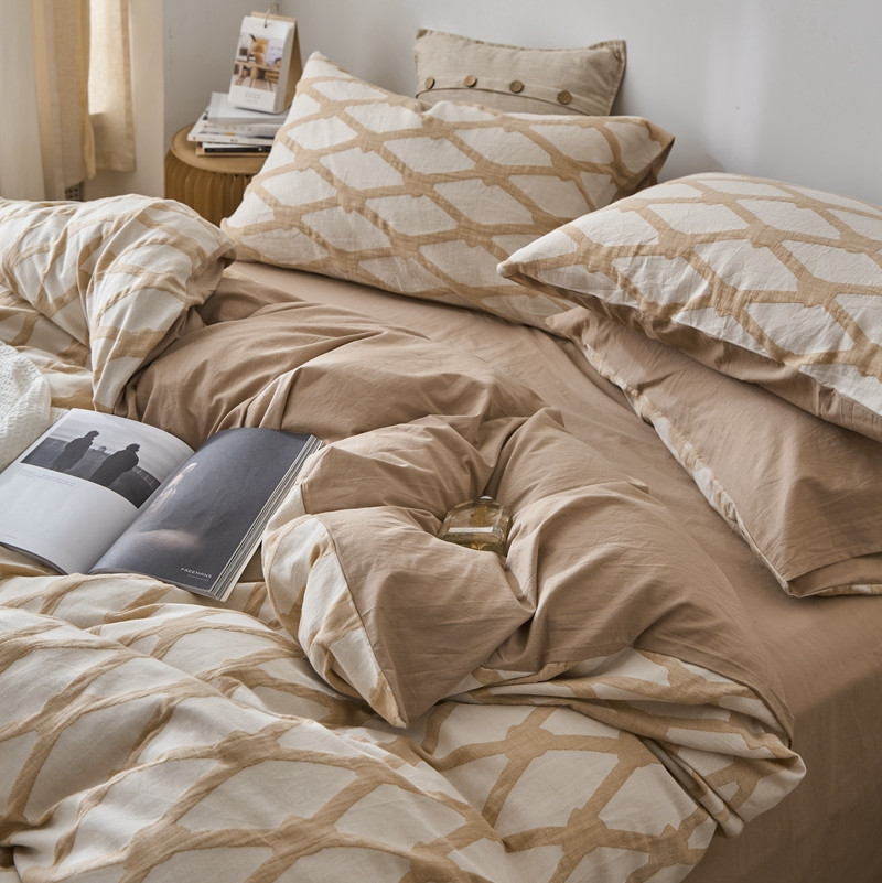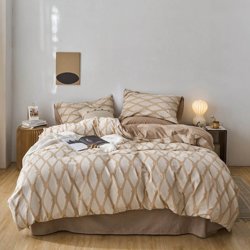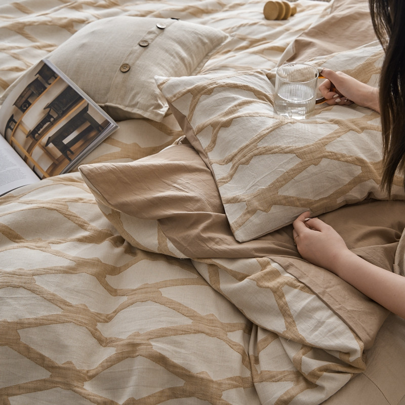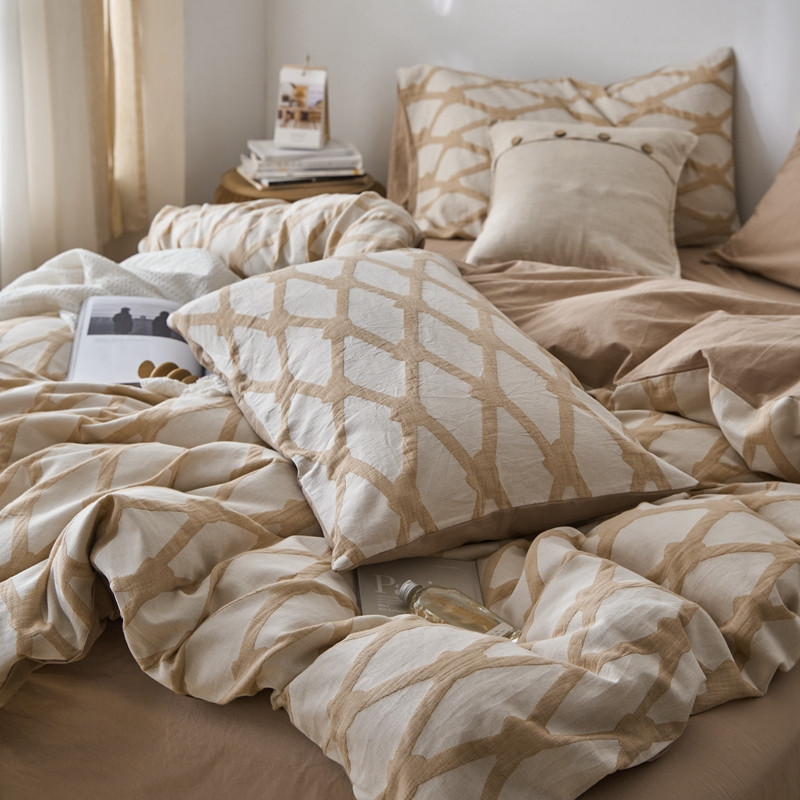 简家居 2022新款全棉色织大提花帛格系列四件套帛格-咖