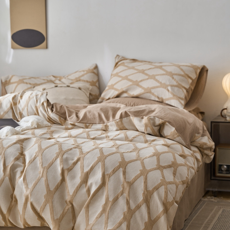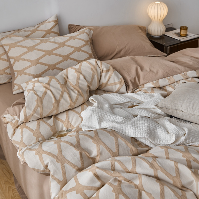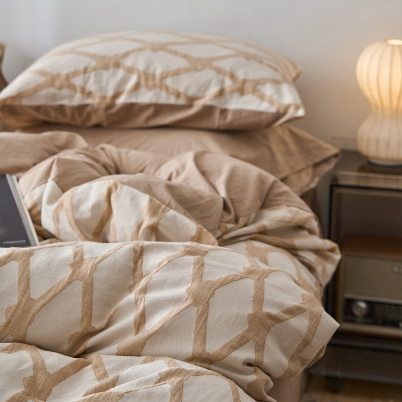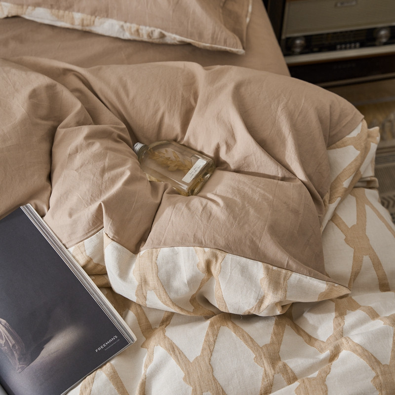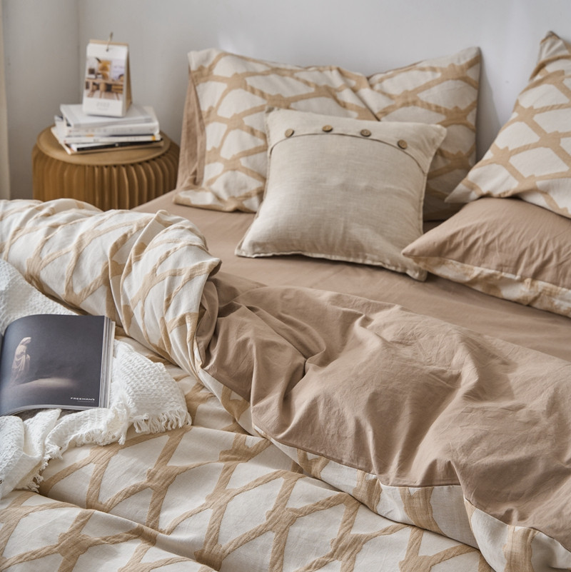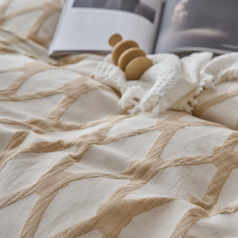 简家居 2022新款全棉色织大提花帛格系列四件套帛格-咖