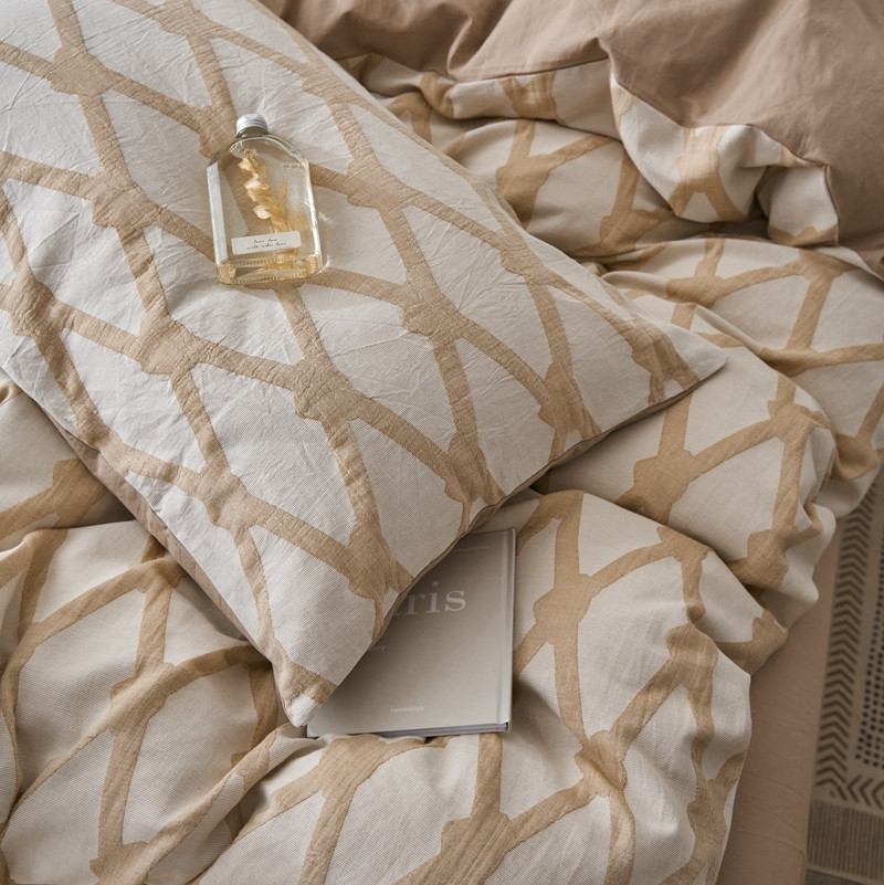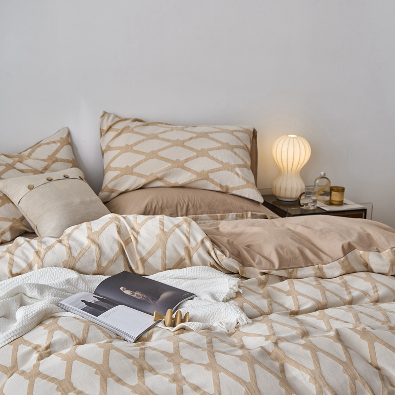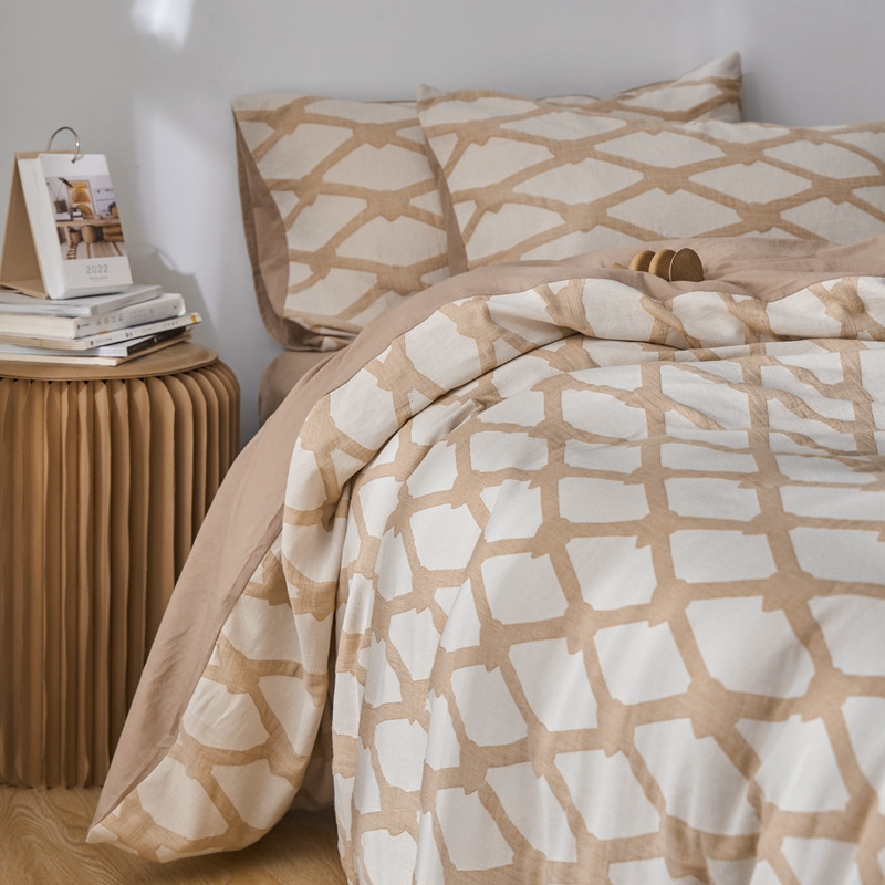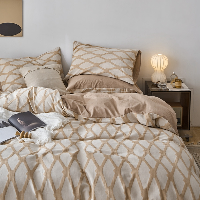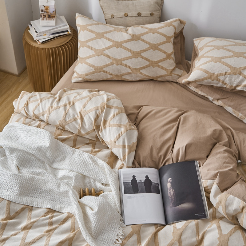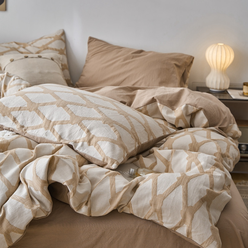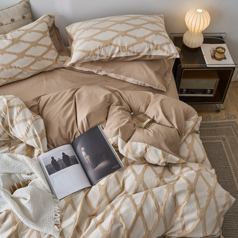 简家居 2022新款全棉色织大提花帛格系列四件套帛格-咖