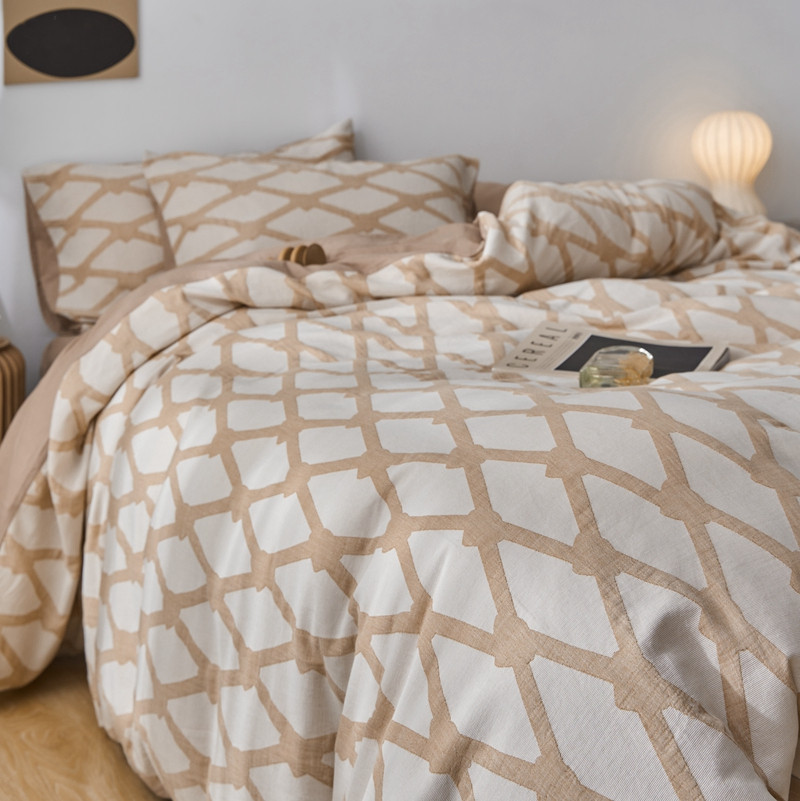 (总)简家居 2025新款60支色织空气棉四件套-敦煌喜梦,敦煌喜梦