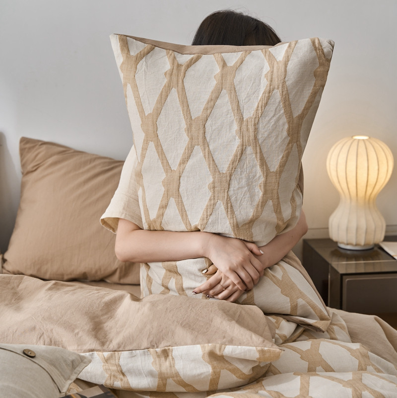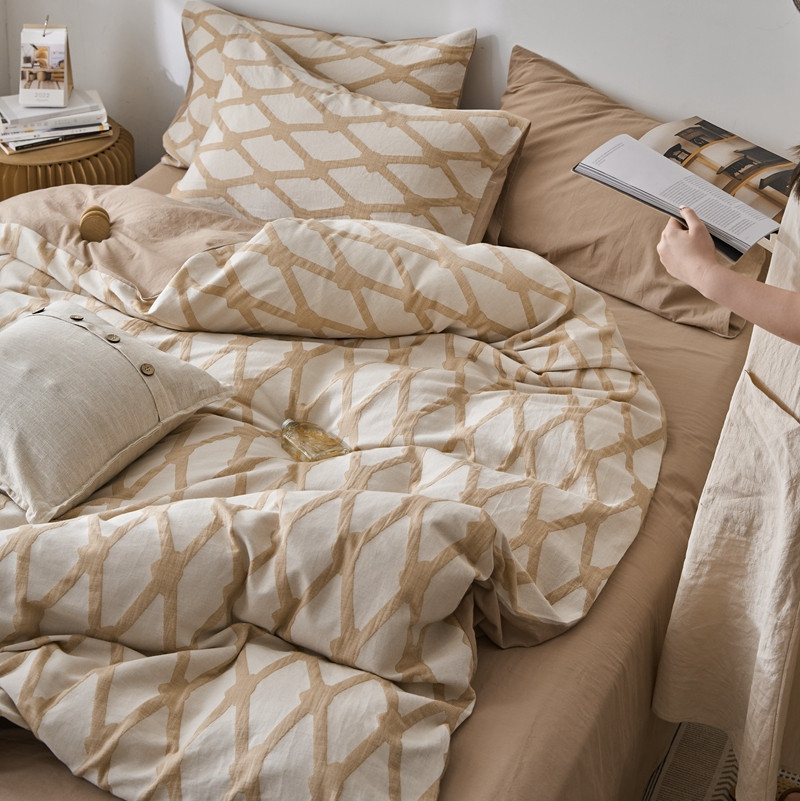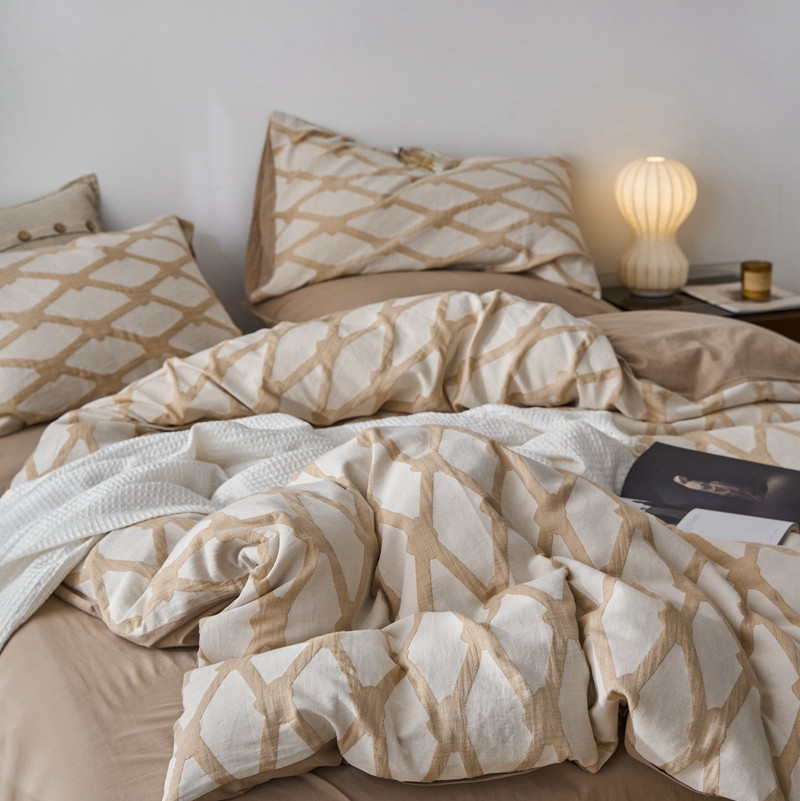 (总)简家居 2025新款亲肤舒适棉麻床盖三件套,棉麻提花