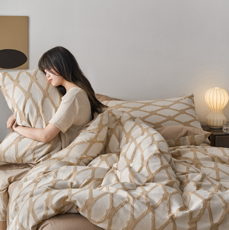(总)简家居 2025新款20%亚麻80%棉棉麻提花四件套-卢浮秘境,卢浮秘境