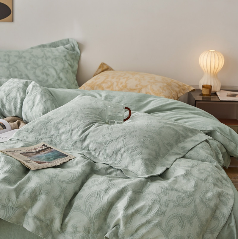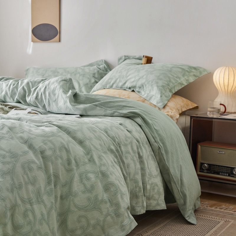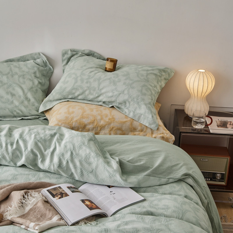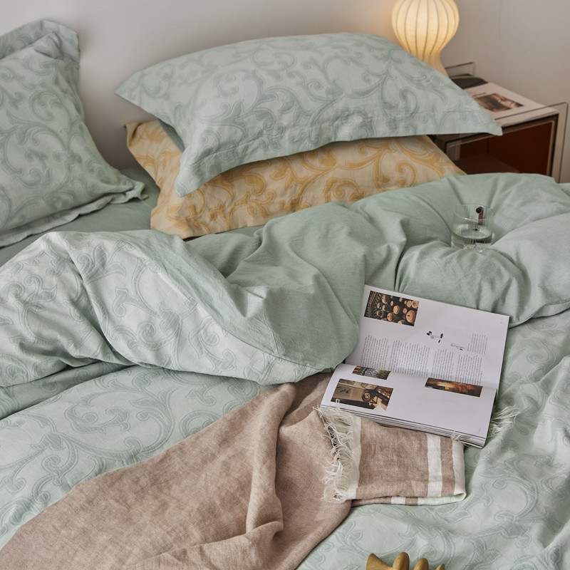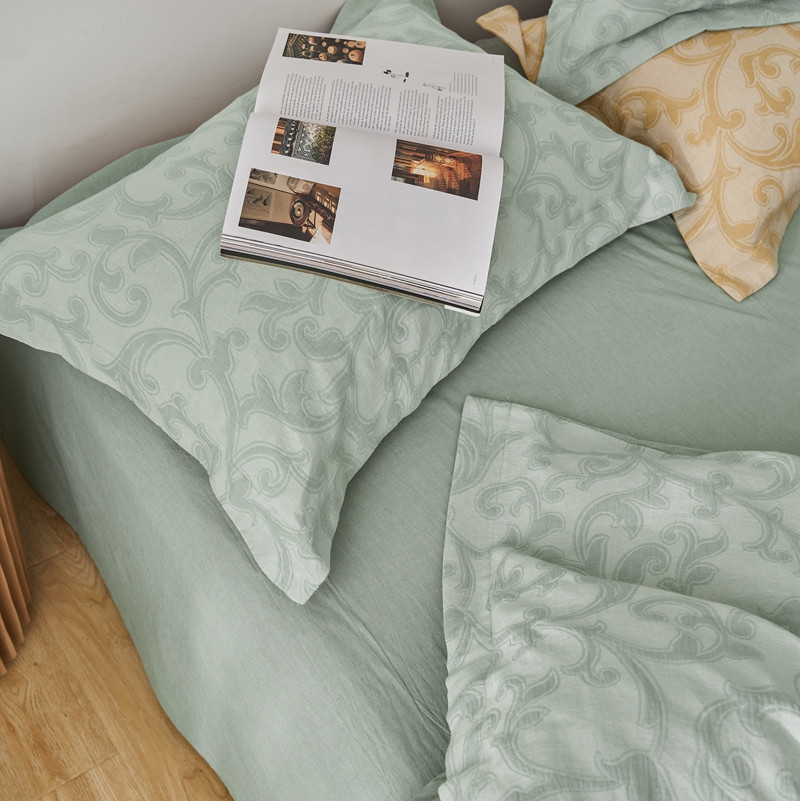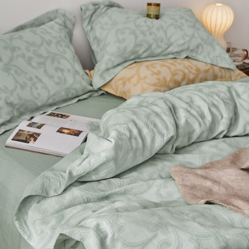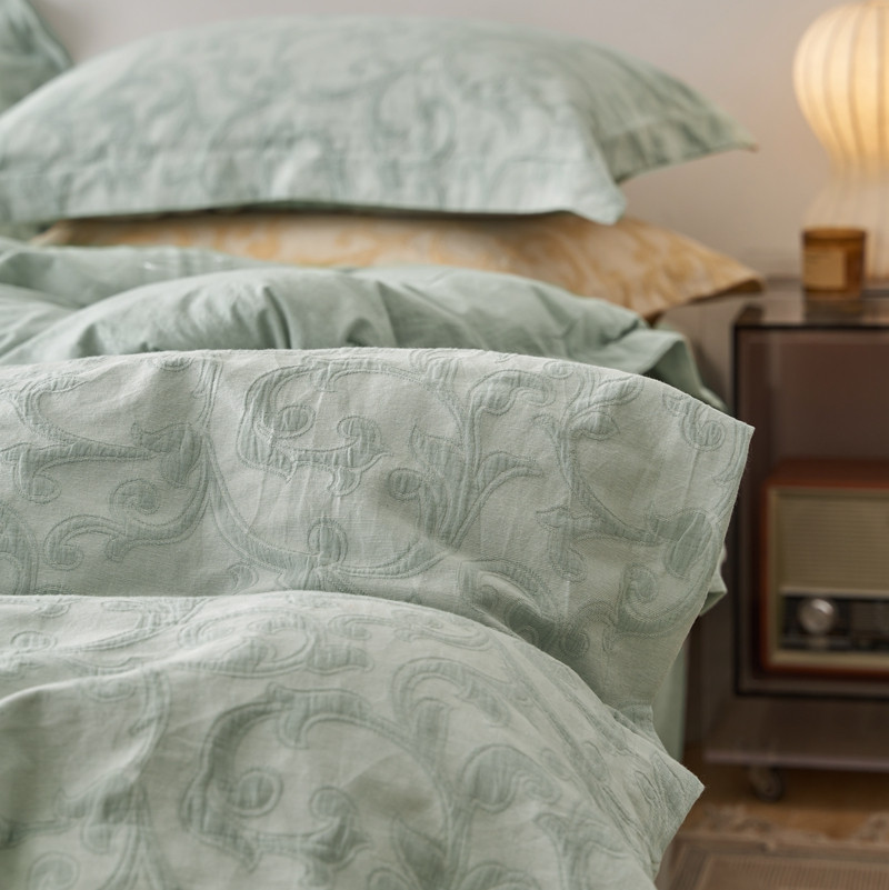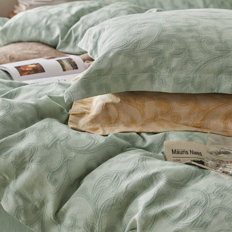 (总)简家居 2025新款20%亚麻80%棉棉麻提花四件套-常青藤,常青藤