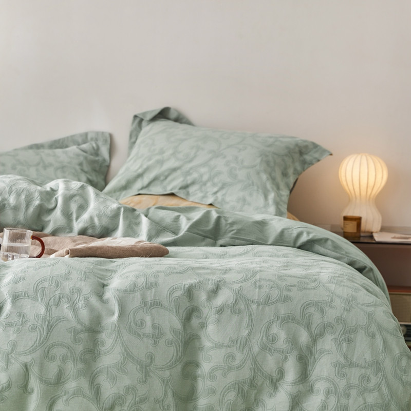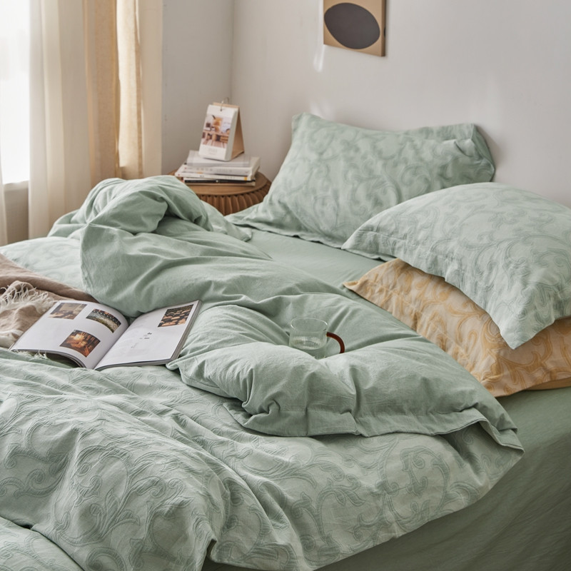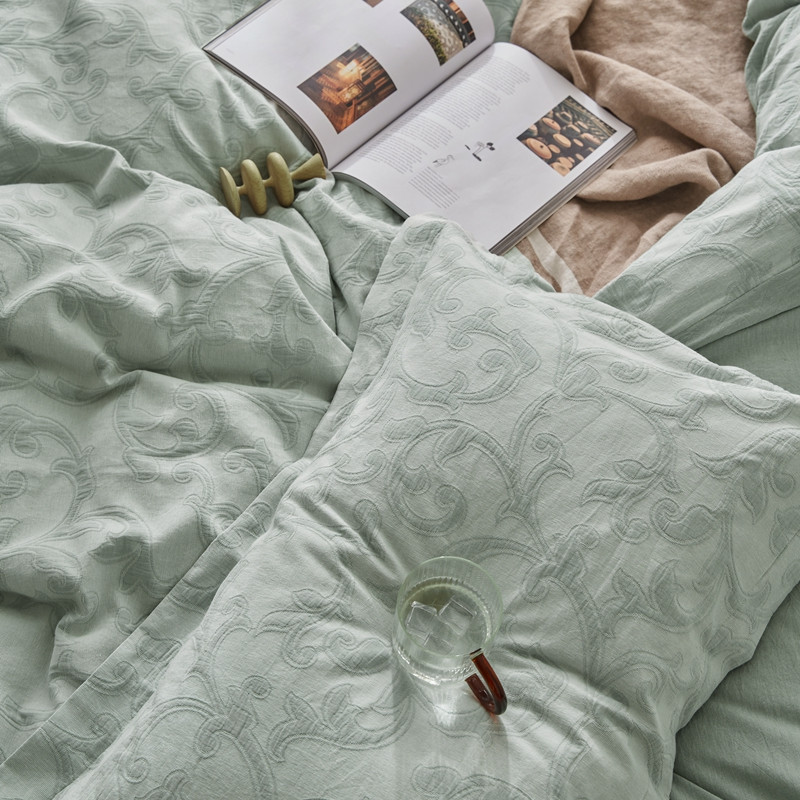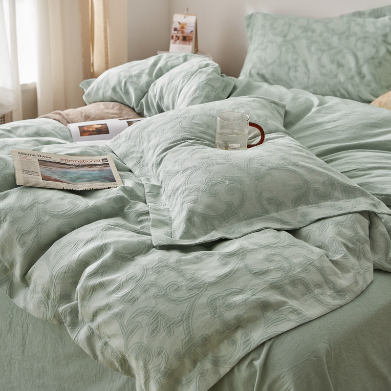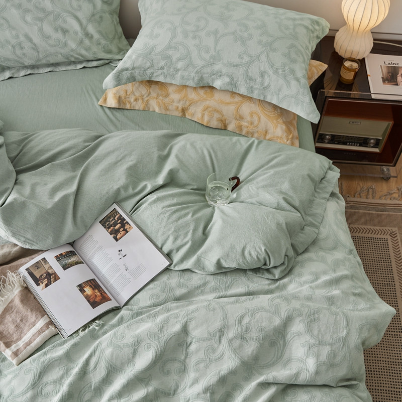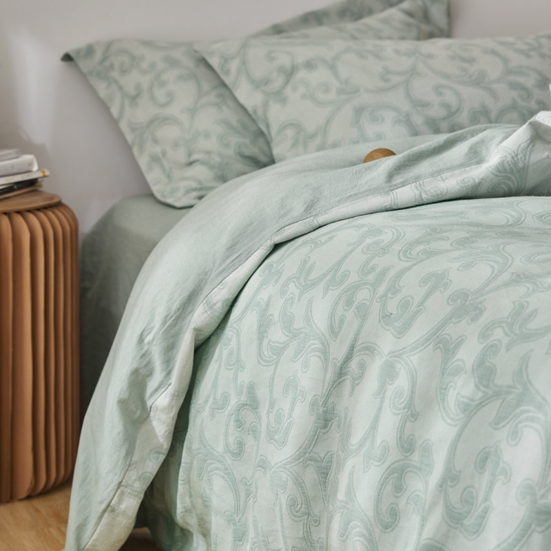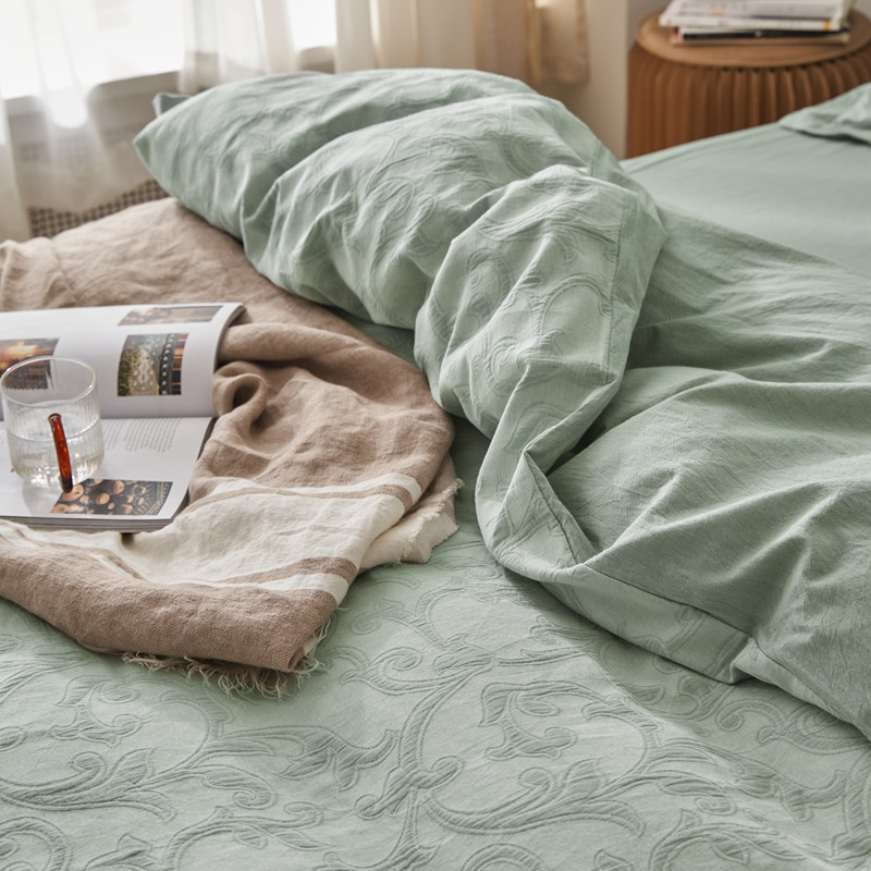 (总)简家居 2025新款20%亚麻80%棉棉麻提花四件套-常青藤,常青藤