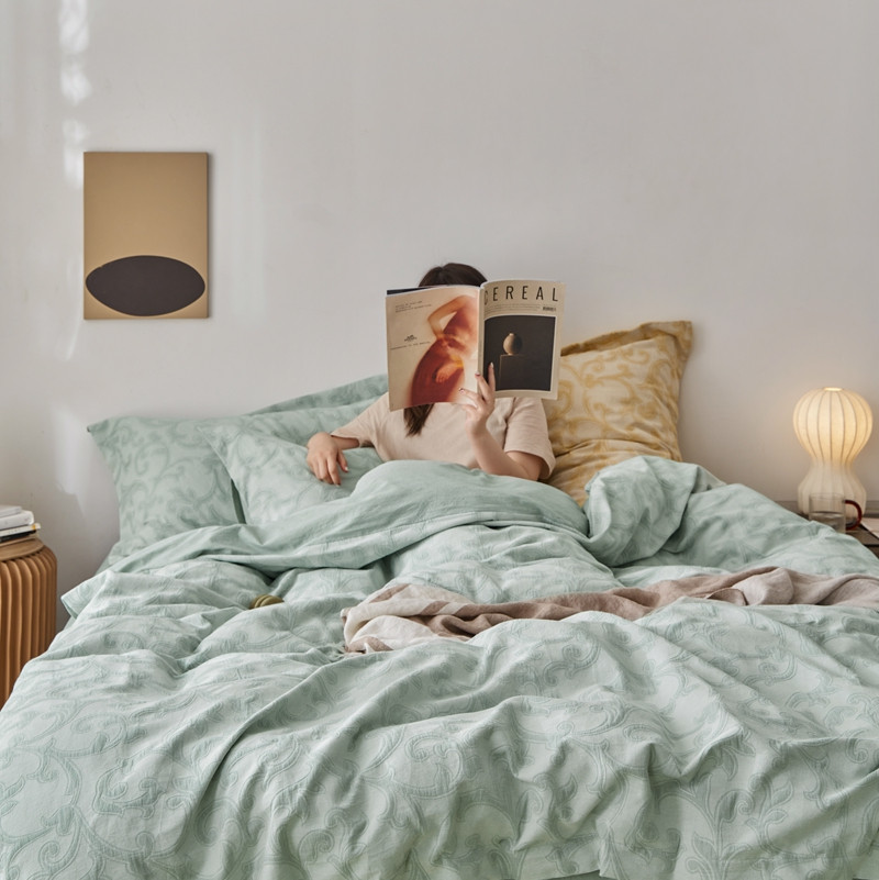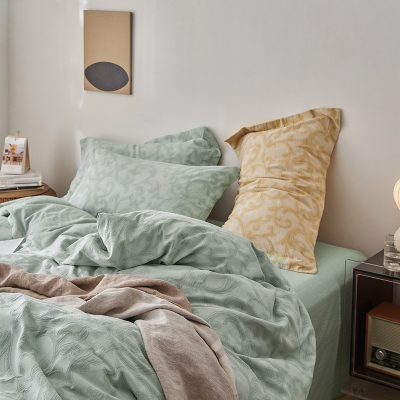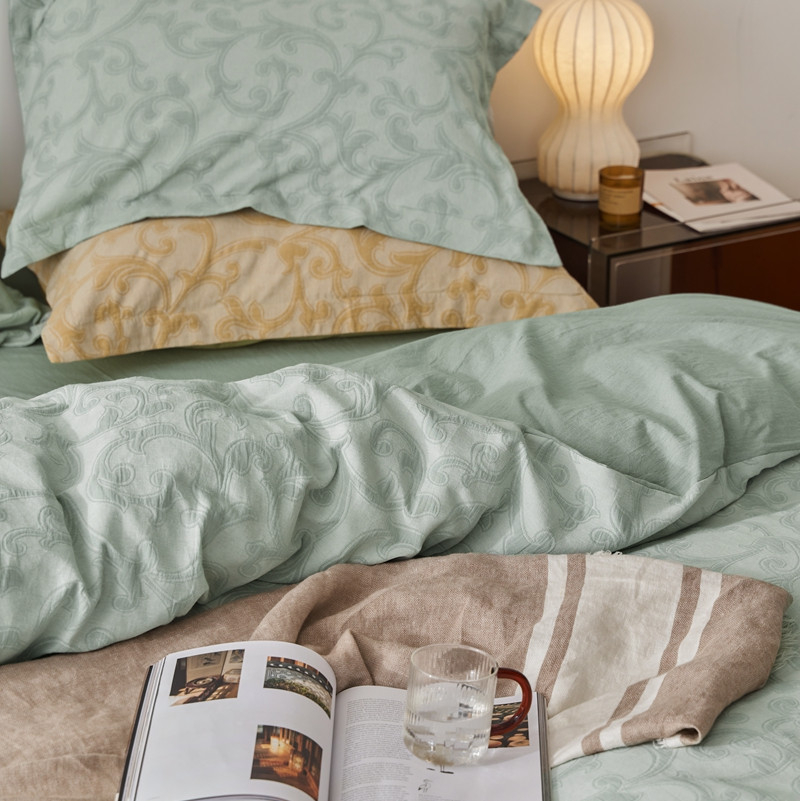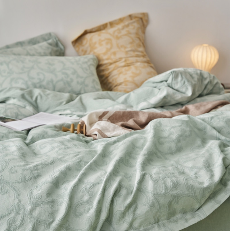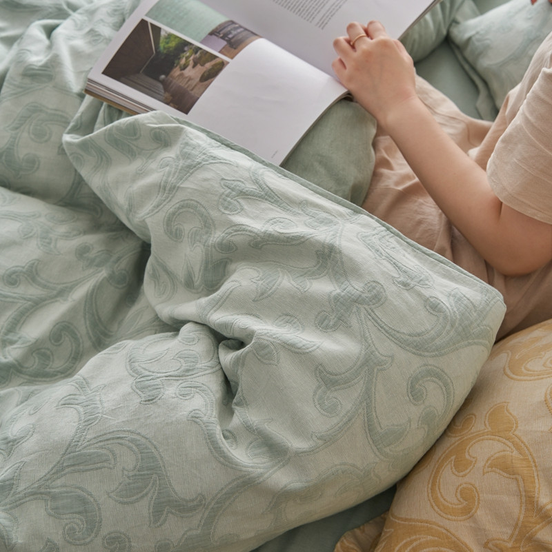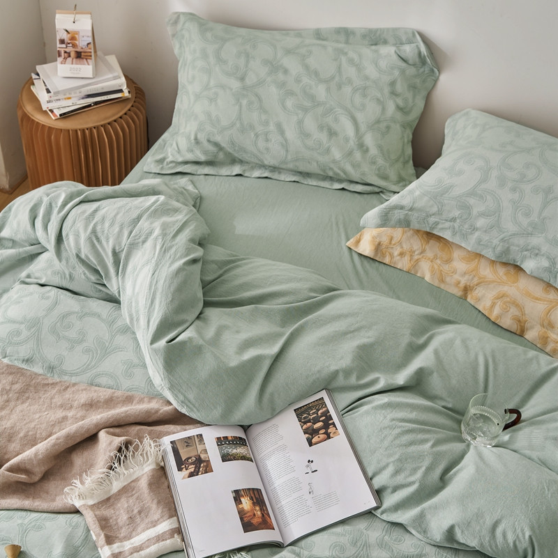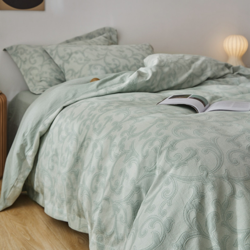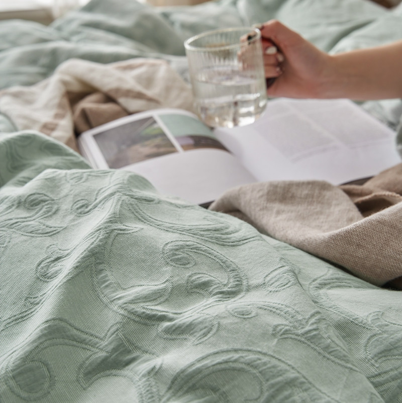 (总)简家居 2025新款20%亚麻80%棉棉麻提花四件套-常青藤,常青藤