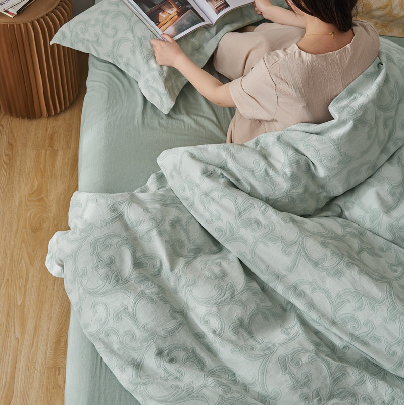 (总)简家居 2025新款20%亚麻80%棉棉麻提花四件套-法颂,法颂