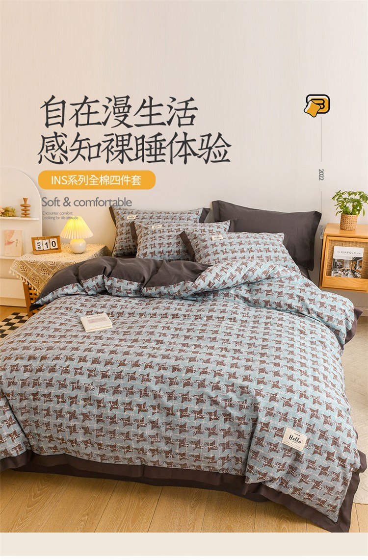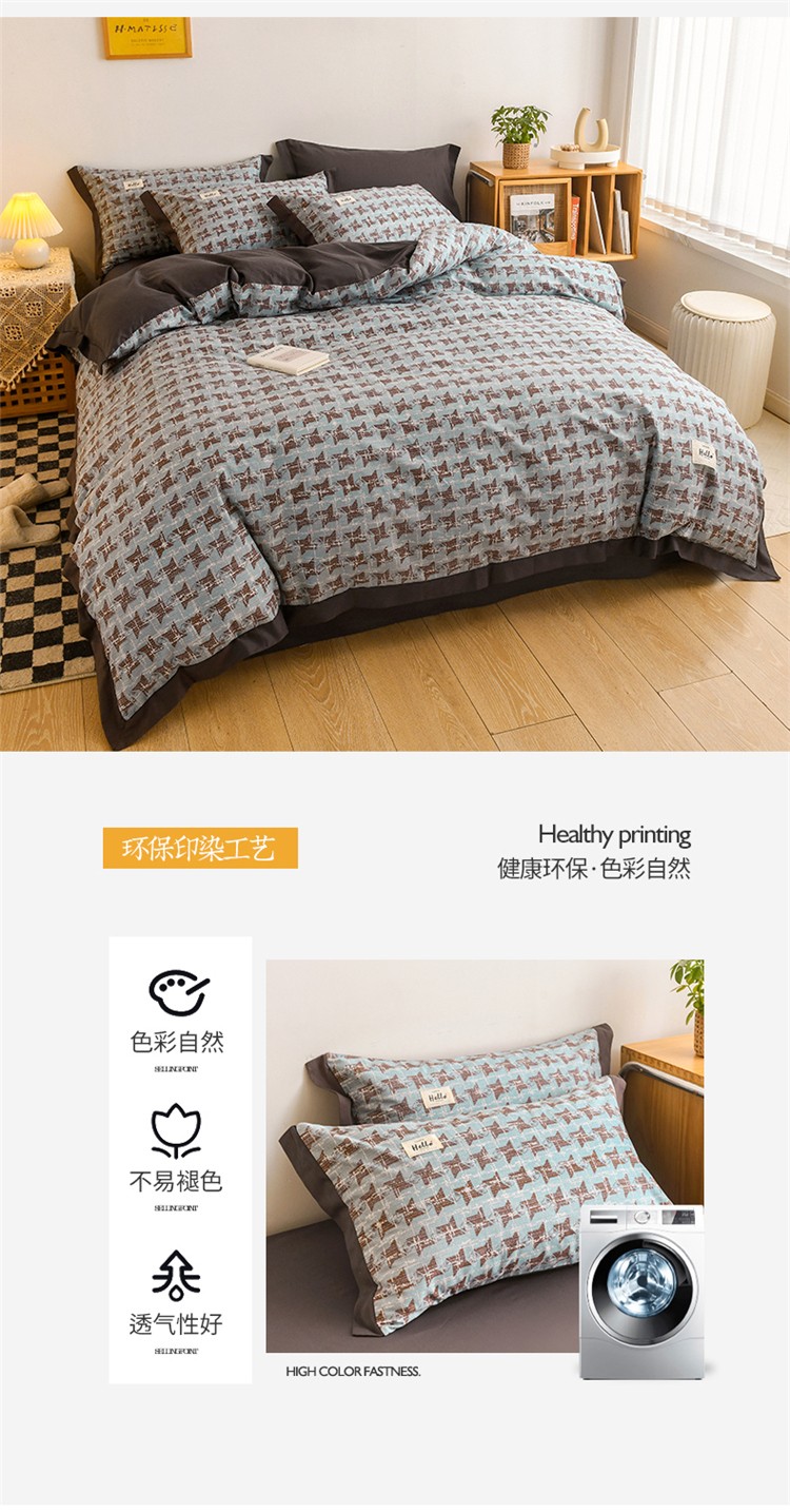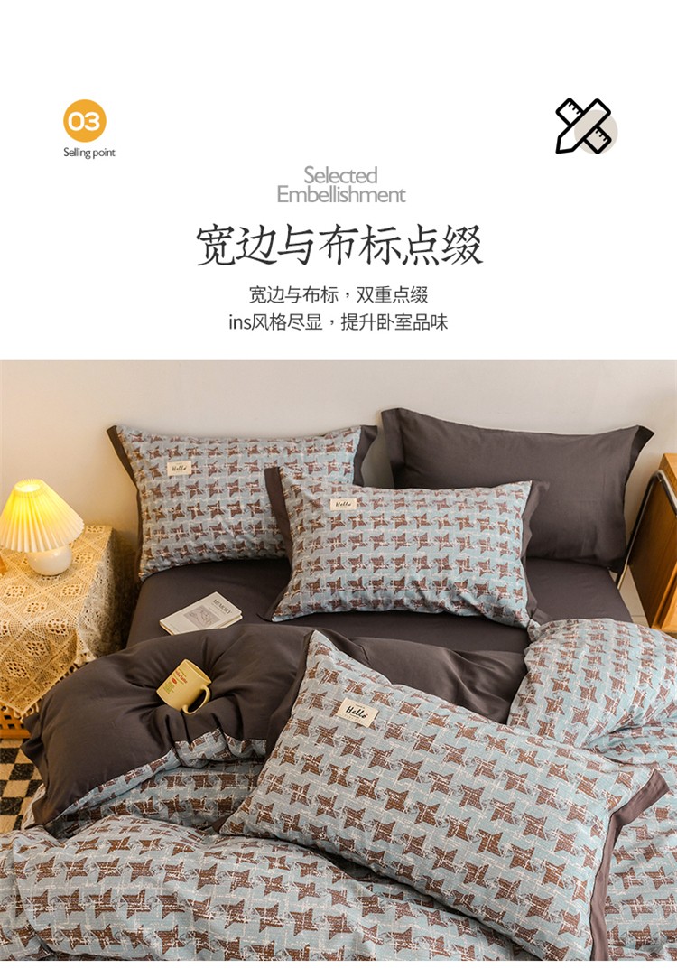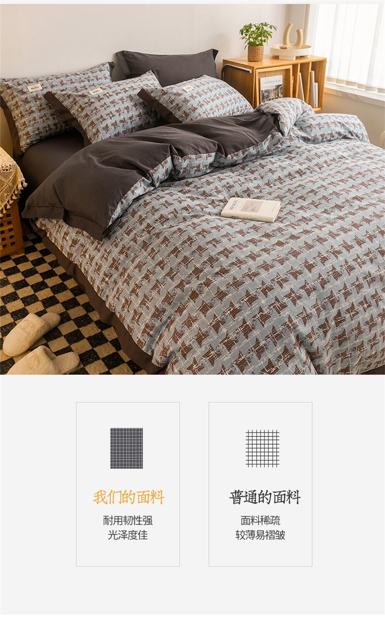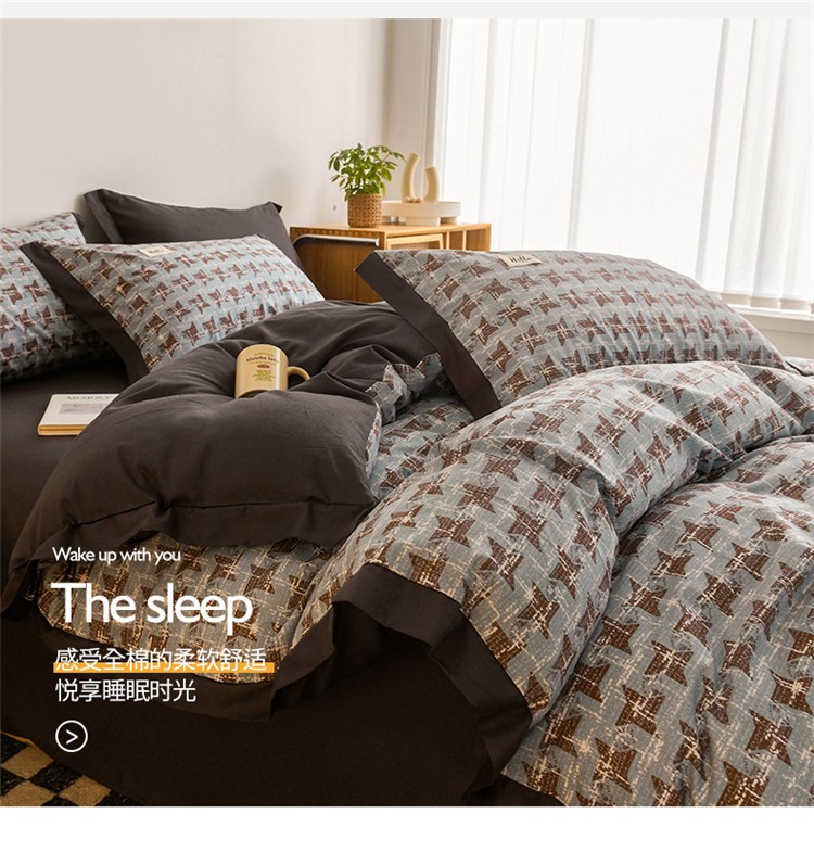商品名称:花言狐语2025新款全棉色布13372拼角工艺款四件套 胧月