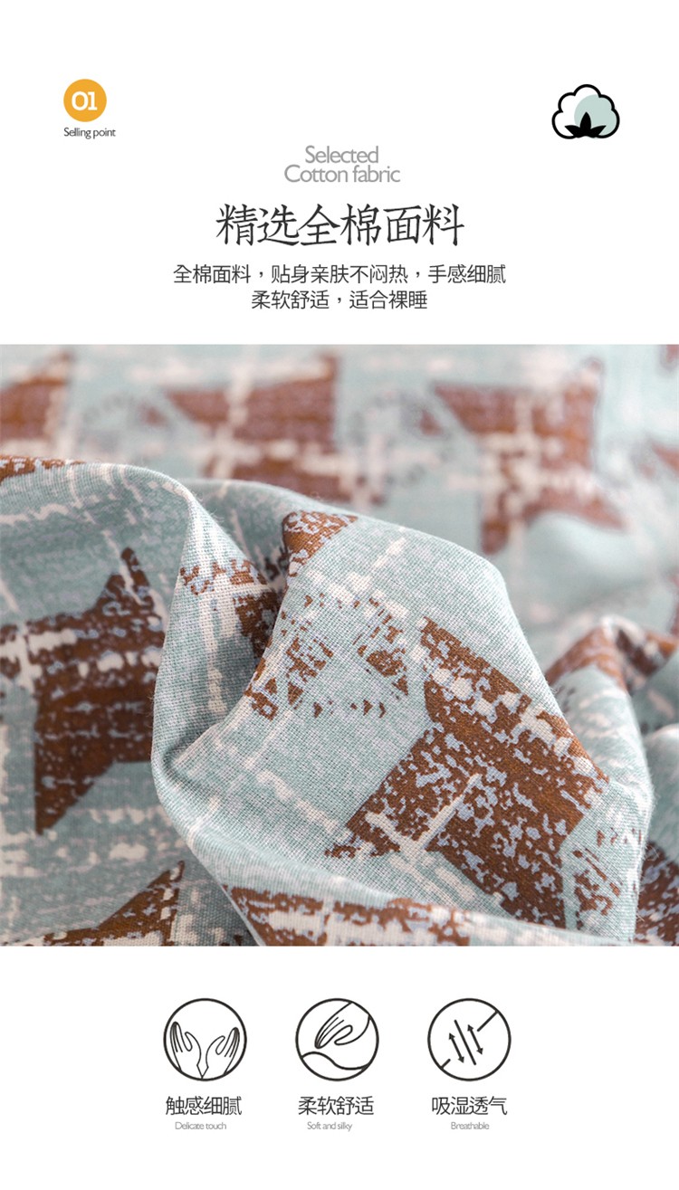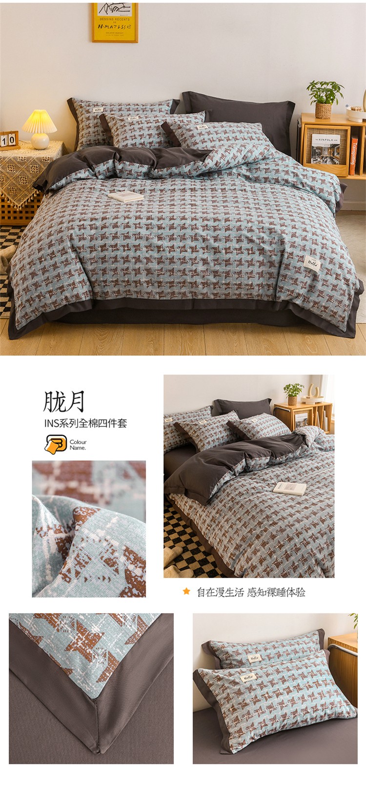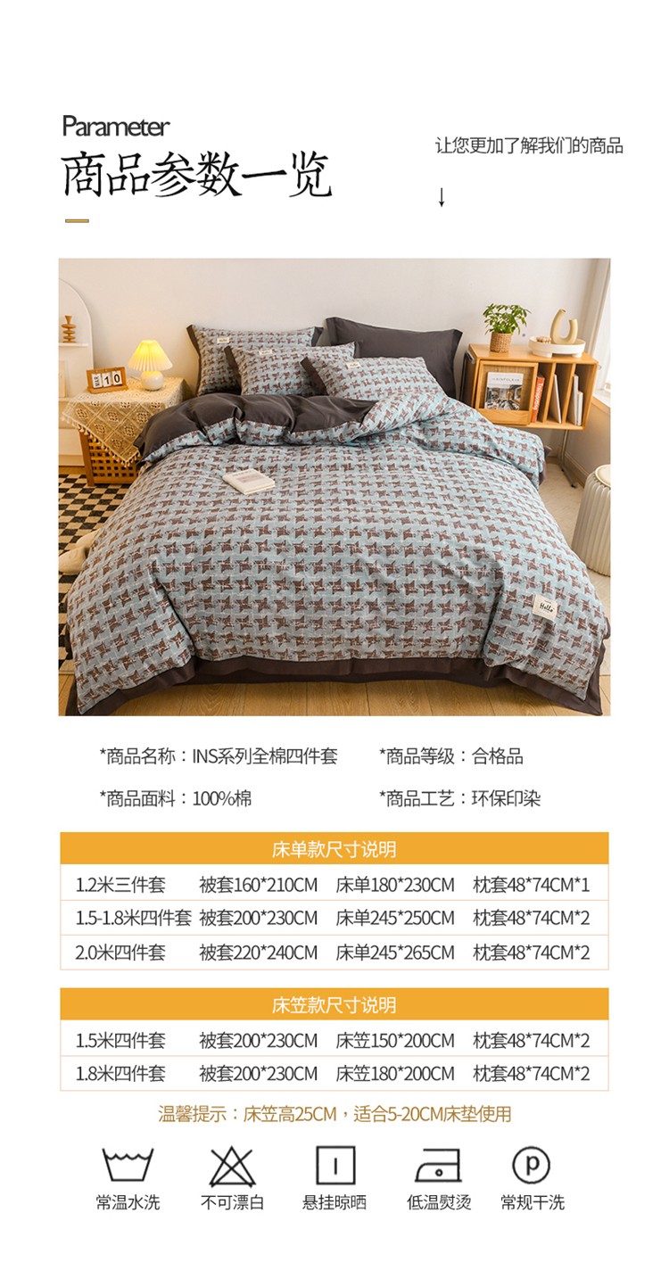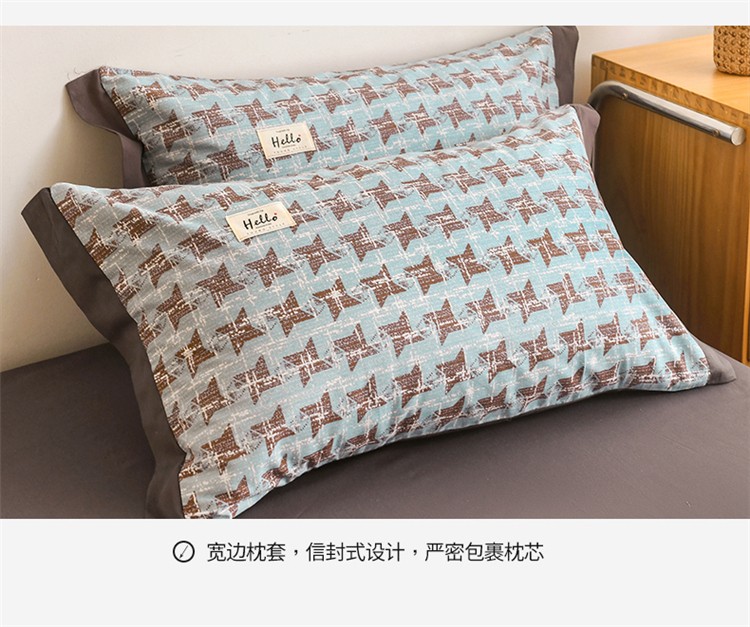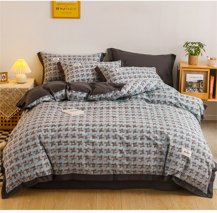 商品名称:花言狐语2025新款全棉色布13372拼角工艺款四件套 胧月