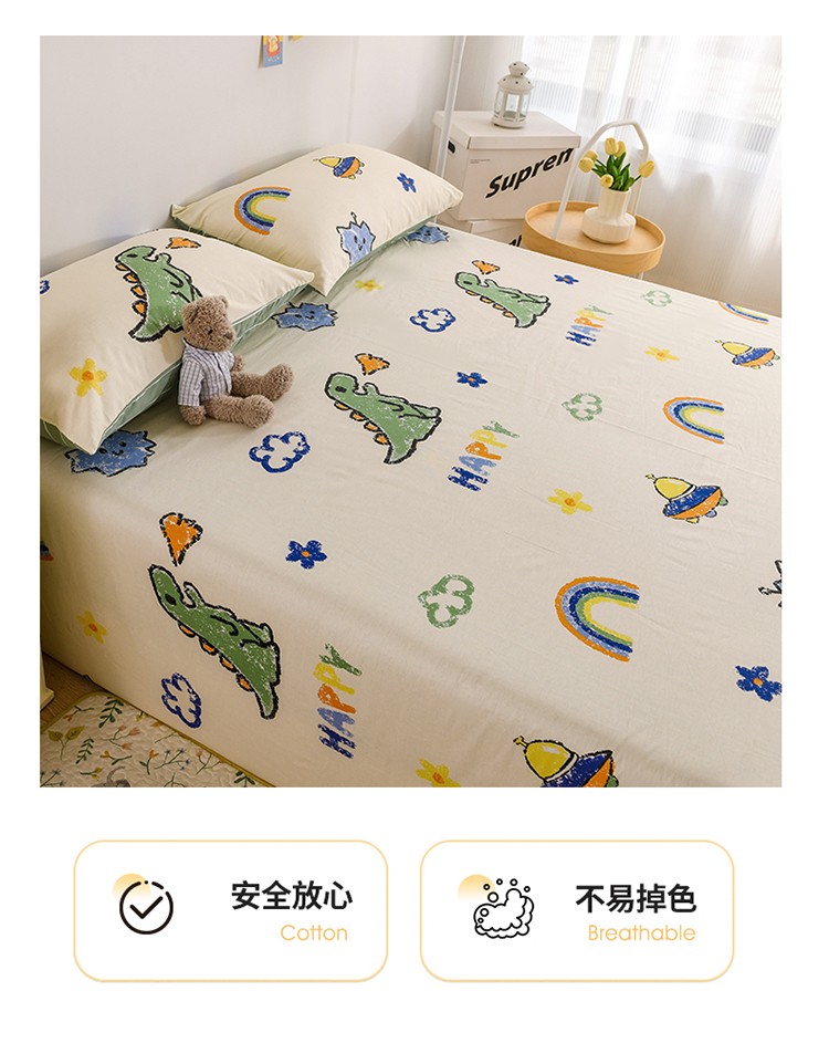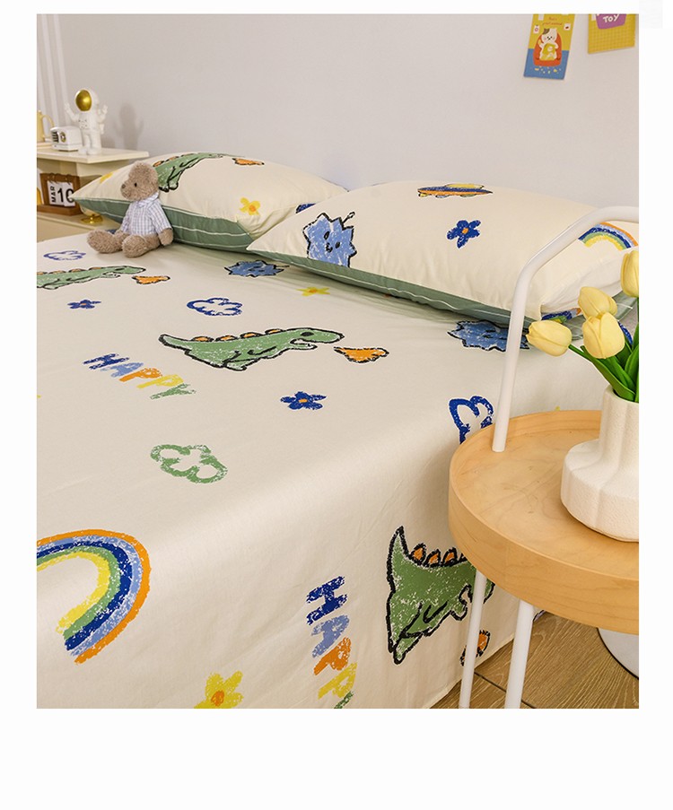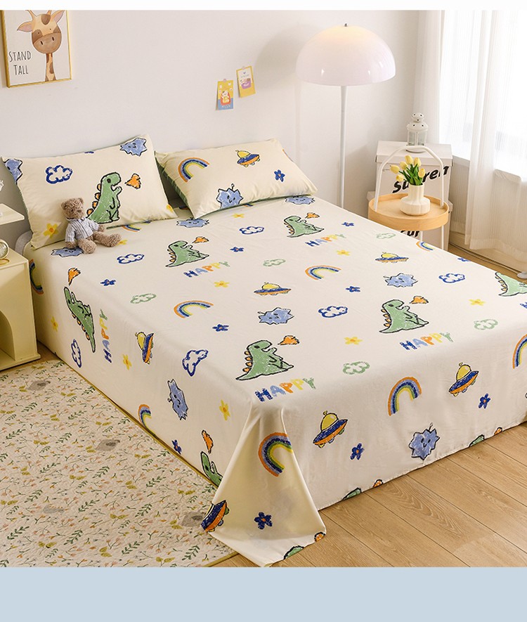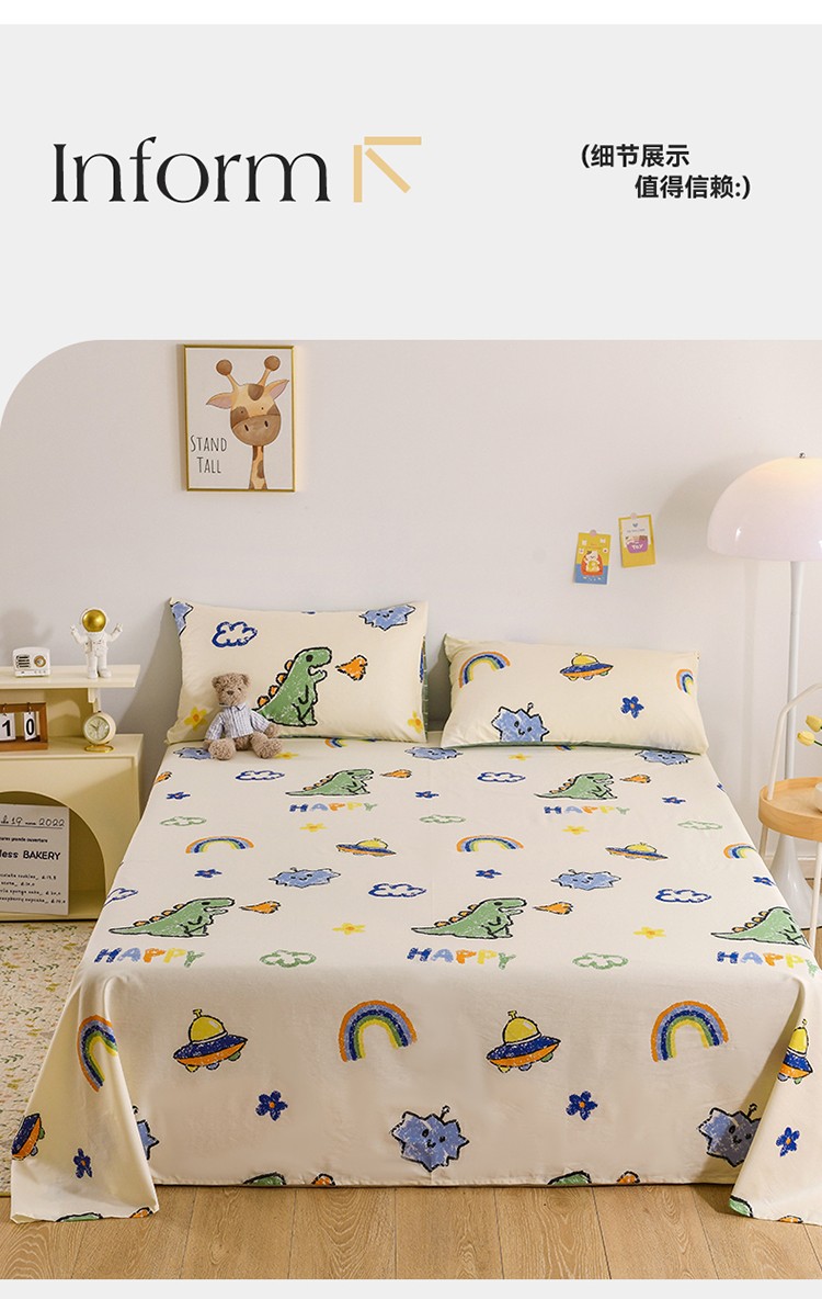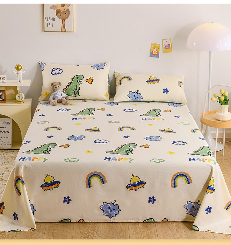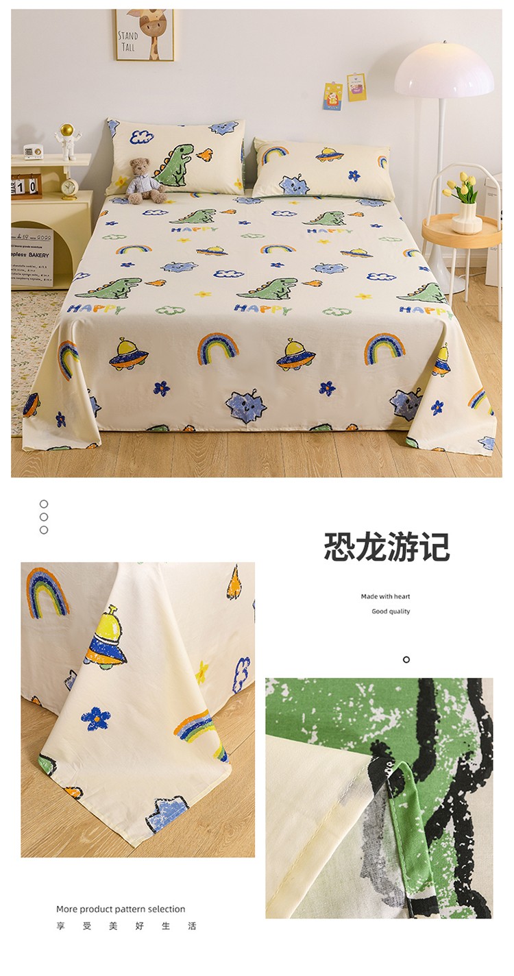 名兮家居 2022新款全棉印花单件床单及三件套 恐龙游记
