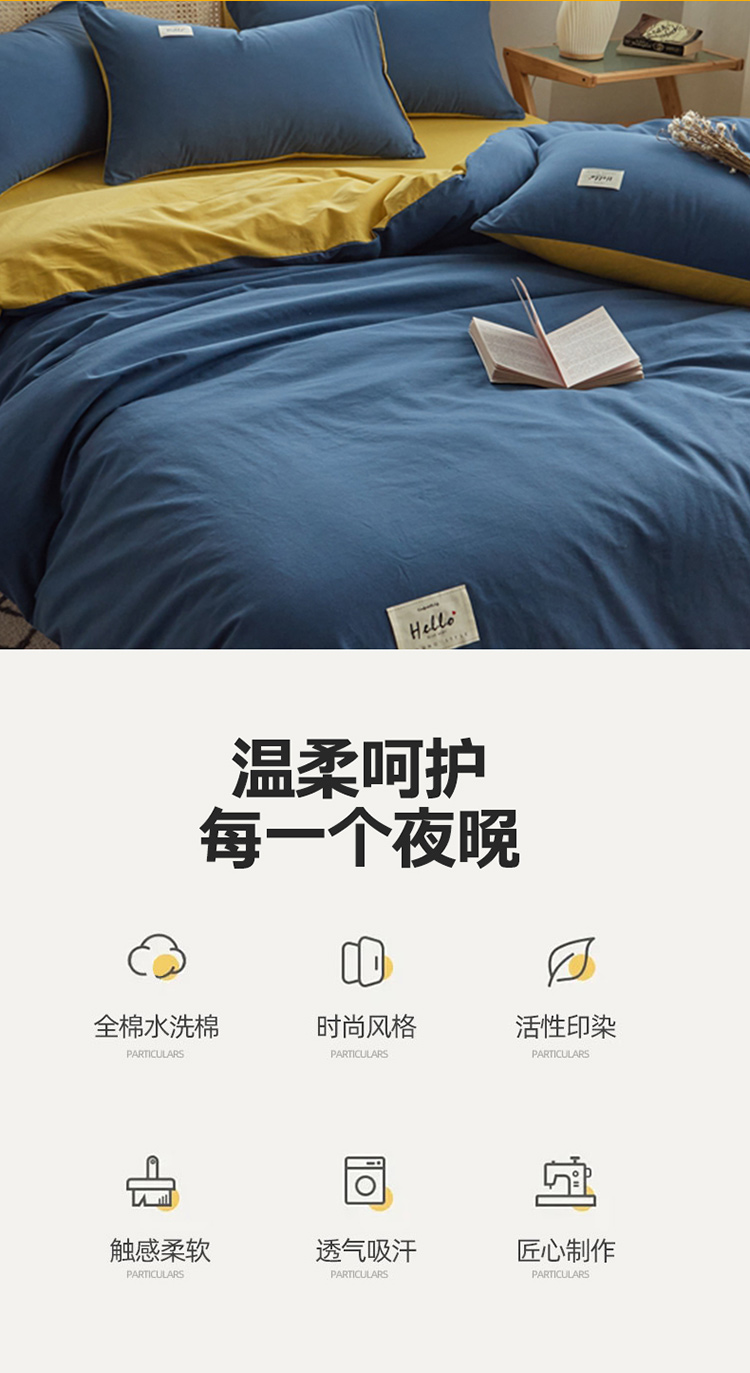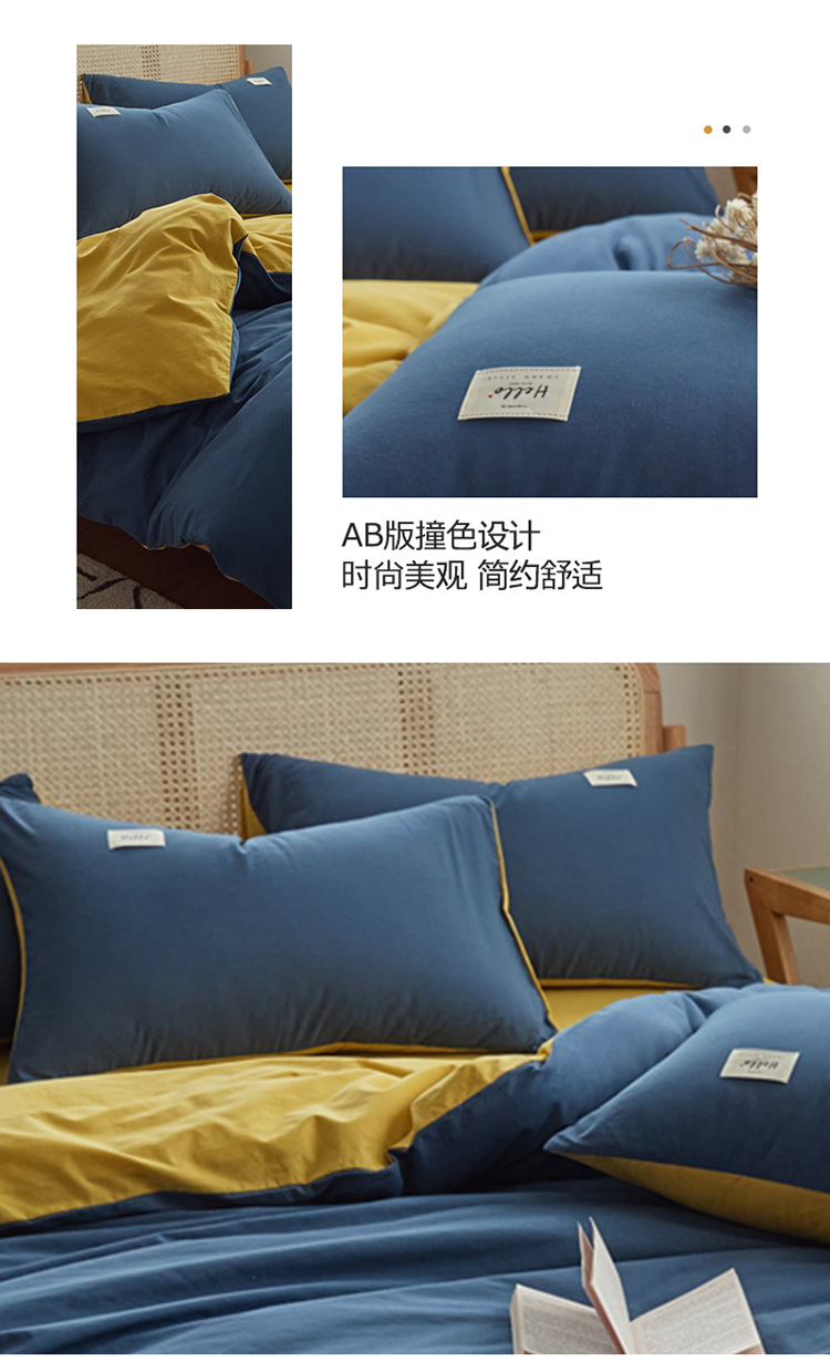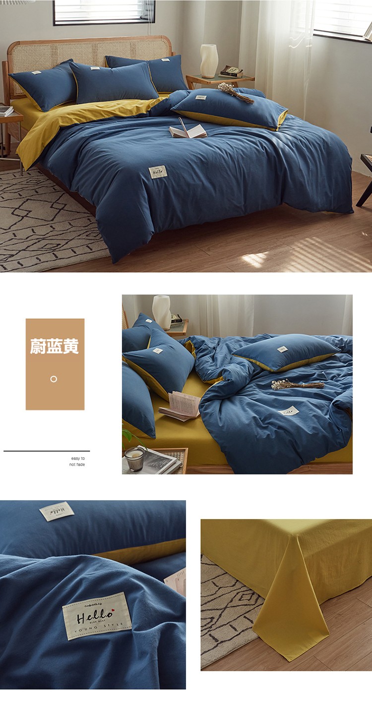 当前位置: 91家纺网 > 商品网购 > 床品套件 > 四件套 > 水洗棉四件套 > ab家纺 2022新款全棉水洗棉四件套(格子+素色) 蔚蓝黄