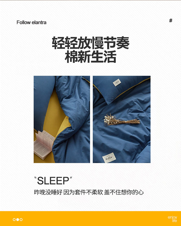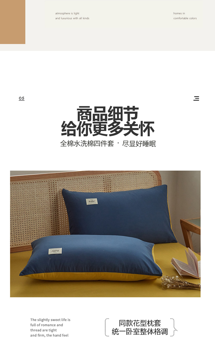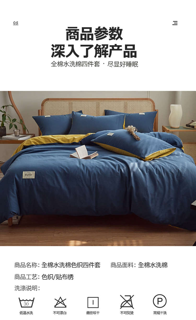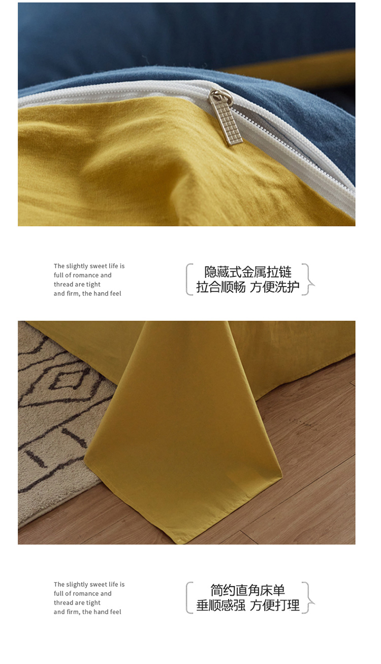 当前位置: 91家纺网 > 商品网购 > 床品套件 > 四件套 > 水洗棉四件套 > ab家纺 2022新款全棉水洗棉四件套(格子+素色) 蔚蓝黄
