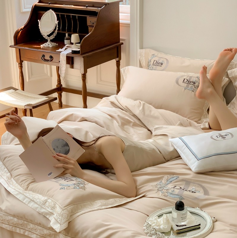 馨蕊家居2022秋冬新品100支高定系列全棉四件套-蝶舞 香槟