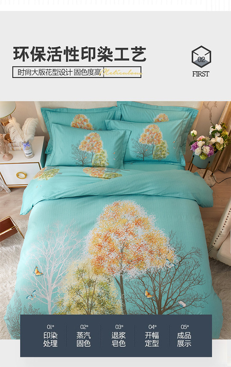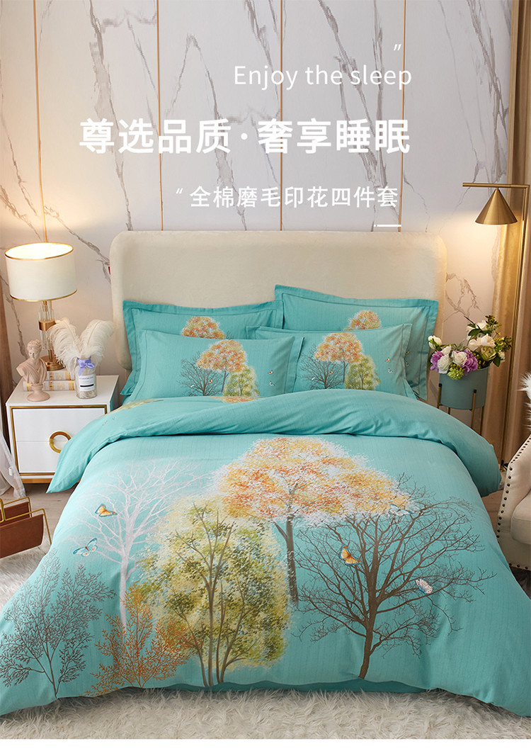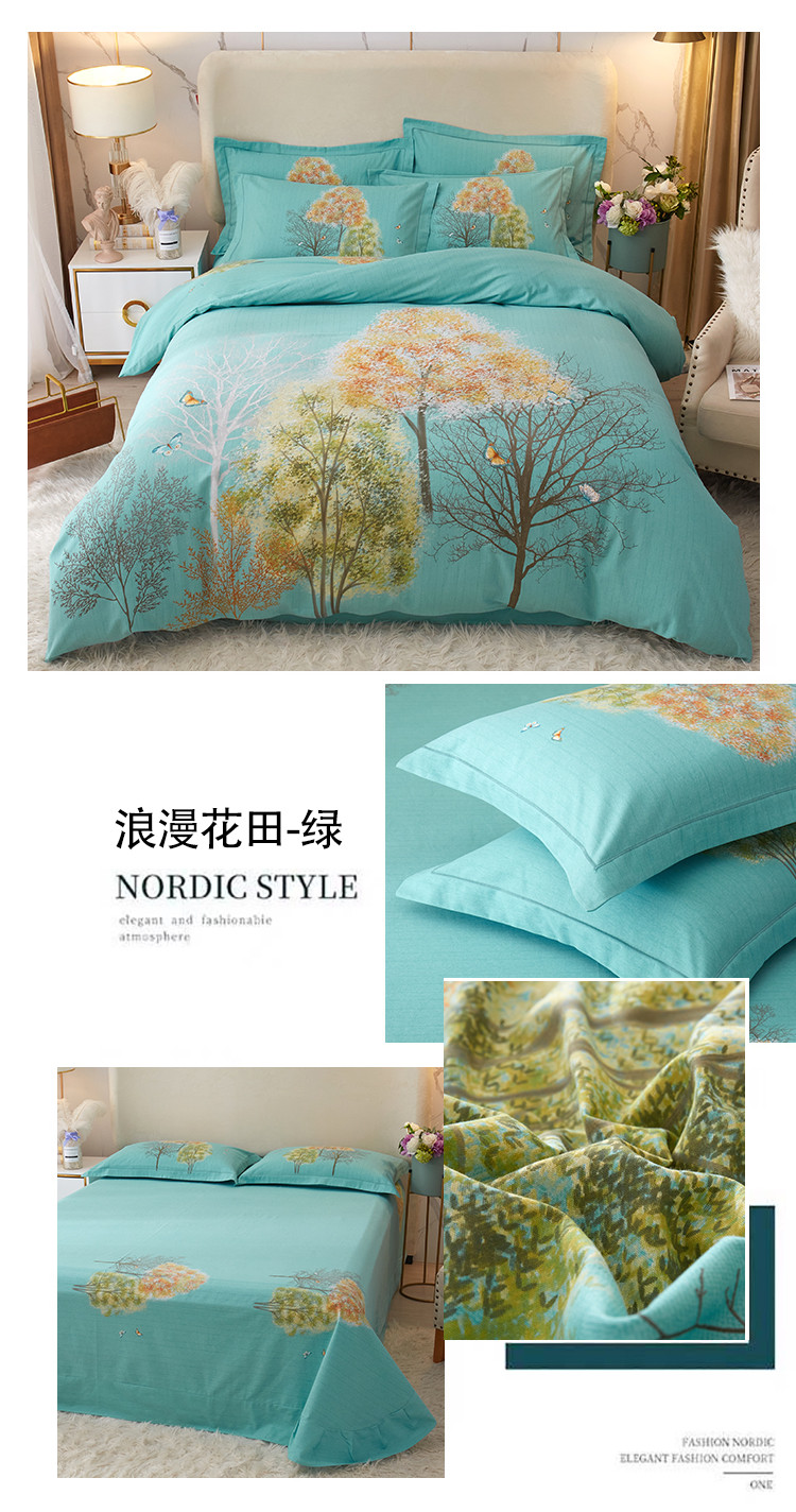 商品名称:金纱玉纺2022新款全棉生态大版磨毛四件套浪漫花田-绿