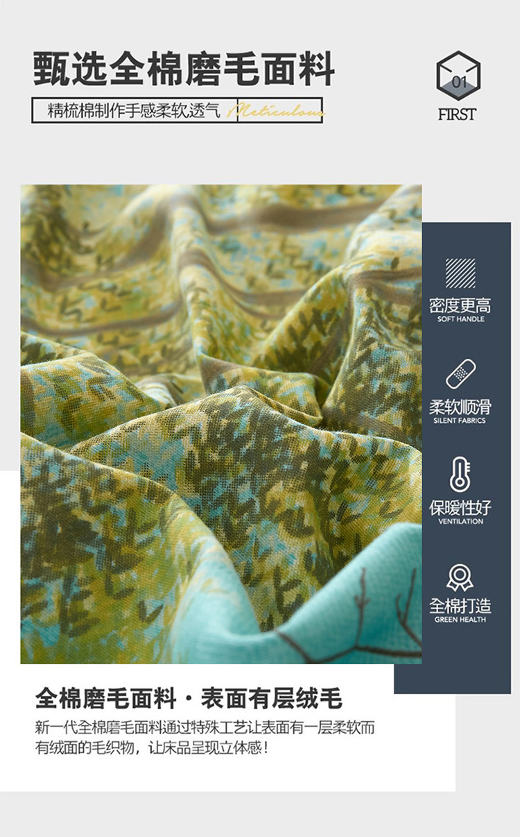 金纱玉纺2022新款全棉生态大版磨毛四件套浪漫花田-绿