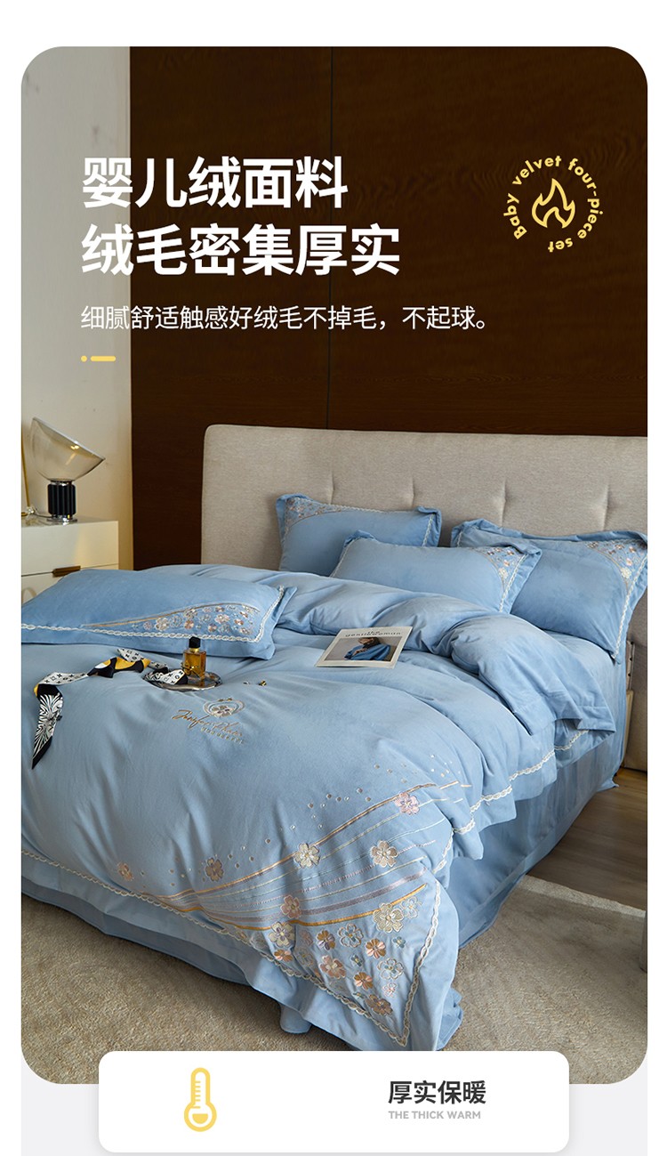商品名称:名品优仓2022新款刺绣婴儿绒230克四件套-温柔时光繁星蓝